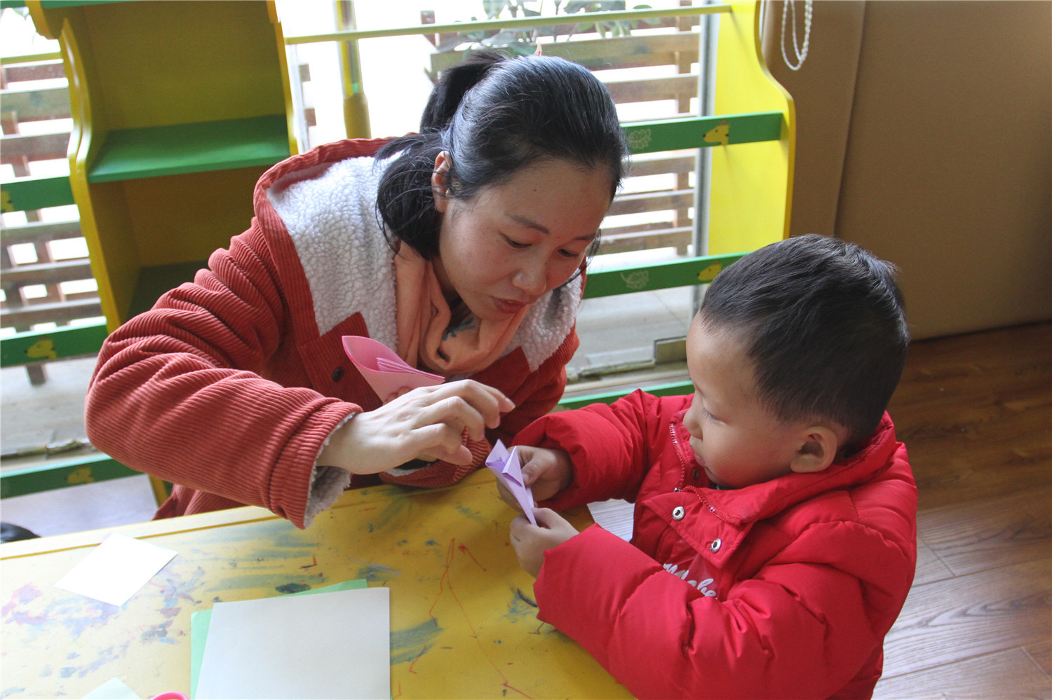 1月14日上午,翔安区图书馆在低幼阅读体验区举办了“亲子阅读坊”2018年第1期活动。翔安区新店第二中心幼儿园的2名教师志愿者为到场的低幼小读者和家长带来了《彩虹色的花》的绘本故事,这是一个极其温柔细腻的故事,传达了一个乐于助人的精神。老师还指导他们用彩色折纸制作“彩虹色的花”。活动结束后,老师讲述了各式各样的绘本,并与家长交流,指导亲子阅读。