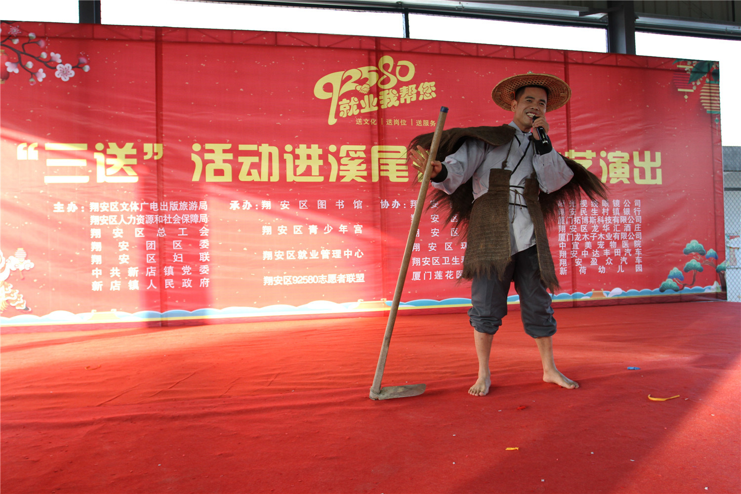 此外,翔安区图书馆还整合了区相关单位,以“92580就业我帮您”为主题,以送文化、送岗位、送服务“三送”为内容,除区图书馆服务活动外,还有大型文艺演出、企业现场招聘,以及区人社局、区总工会、团区委、区妇联、区环保分局、区建设局、区司法局、区卫计局等相关部门在现场摆摊设点向村民提供就业创业优惠政策、安全生产知识、法律知识、十九大精神等宣传,并接受现场咨询;主办单位还印发了宣传单2000多份,开设了有奖互动问答;莲花医院开展现场义诊服务;阳光视线、聚缘圆等公司免费为村民验光、配镜、推拿、正骨等。