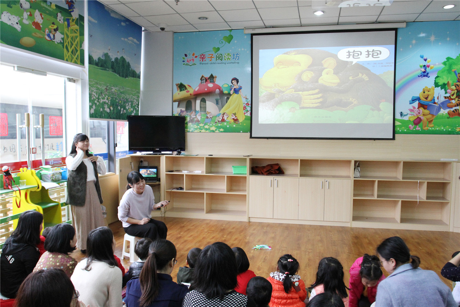 1月28日上午,翔安区图书馆在低幼阅读体验区举办了“亲子阅读坊”2018年第2期活动。翔安区新店第二中心幼儿园的2名教师志愿者为到场的低幼小读者和家长带来了《抱抱》的绘本故事,这是一个简单的故事,蕴含着和乐、温暖的人际关系。老师还指导他们制作立体“抱抱”的亲情贺卡。活动结束后,老师讲述了各式各样的绘本,并与家长交流,指导亲子阅读。