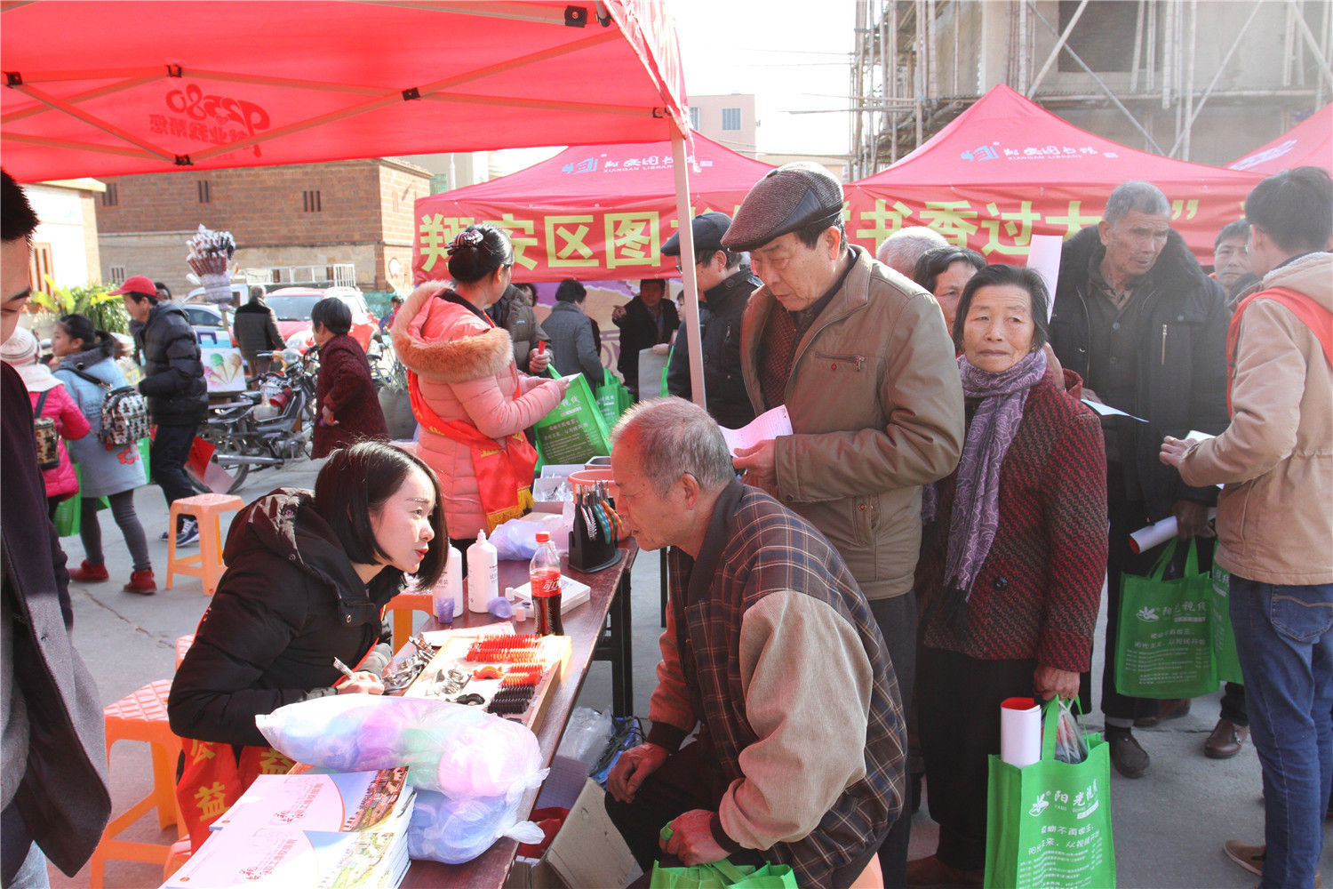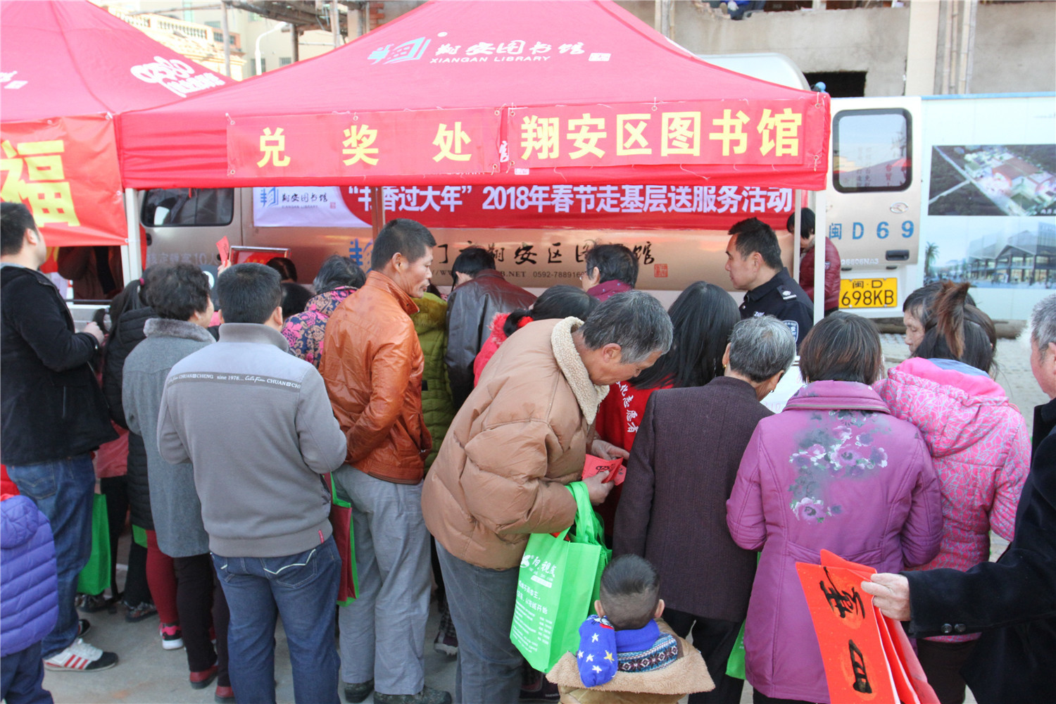 2月6日,大嶝街道田墘社区金门县政府旁热闹非凡,翔安区图书馆在这里举办92580就业我帮您“三送”进社区暨文化下乡活动,此活动亦是“书香过大年”走基层送服务系列活动之一。图书馆组织文化志愿者开展了现场办证借书、“掌阅翔图”移动图书馆推广、图书馆宣传、《中华人民共和国公共图书馆法》宣传、《中华人民共和国公共服务保障法》宣传、好书推介等;还特别邀请了本地书法家开展“书香过大年”手写春联送祝福活动,为社区群众们带来一幅幅饱含新春祝福的春联;精心设计了与翔安区地名有关的具有本土特色的灯谜活动,倡导全民阅读,推动书香翔安建设,受到了广大社区居民的热烈欢迎和积极参与。