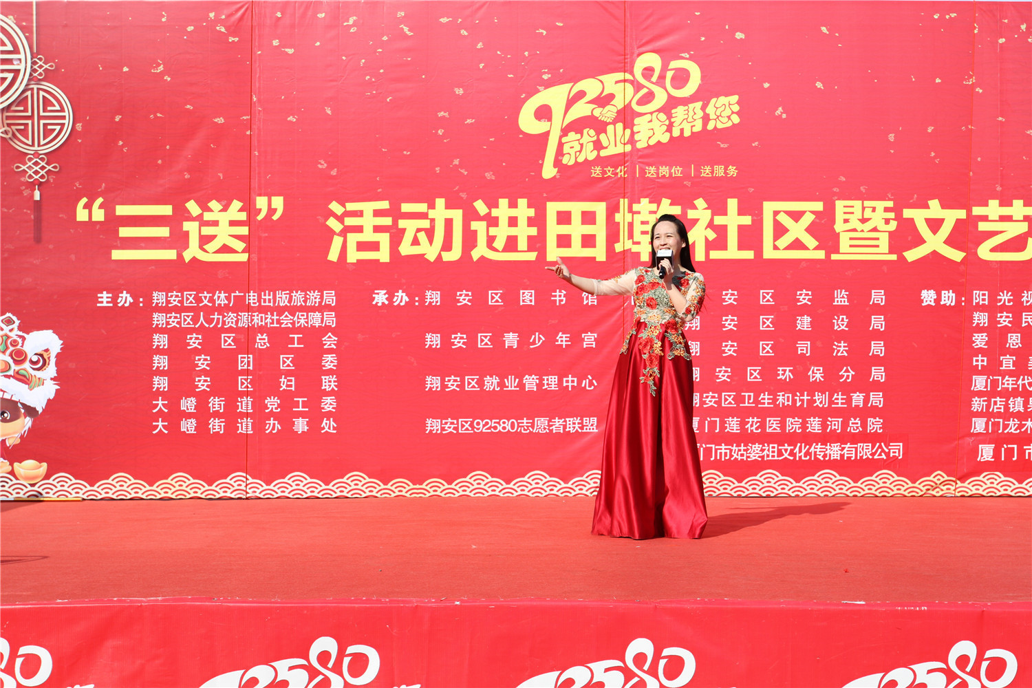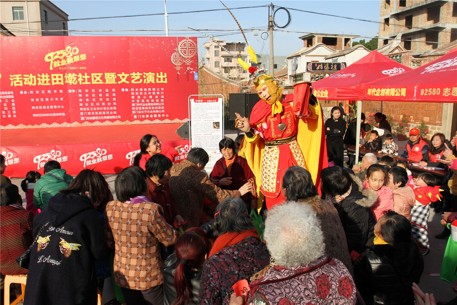 此外,翔安区图书馆还整合了区相关单位,以“92580就业我帮您”为主题,以送文化、送岗位、送服务“三送”为内容,除区图书馆服务活动外,还有大型文艺演出、企业现场招聘,以及区人社局、区总工会、团区委、区妇联、区环保分局、区建设局、区司法局、区卫计局等相关部门在现场摆摊设点向村民提供就业创业优惠政策、安全生产知识、法律知识、十九大精神等宣传,并接受现场咨询;主办单位还印发了宣传单2000多份,开设了有奖互动问答;莲花医院开展现场义诊服务;阳光视线、聚缘圆等公司免费为村民验光、配镜、推拿、正骨等。