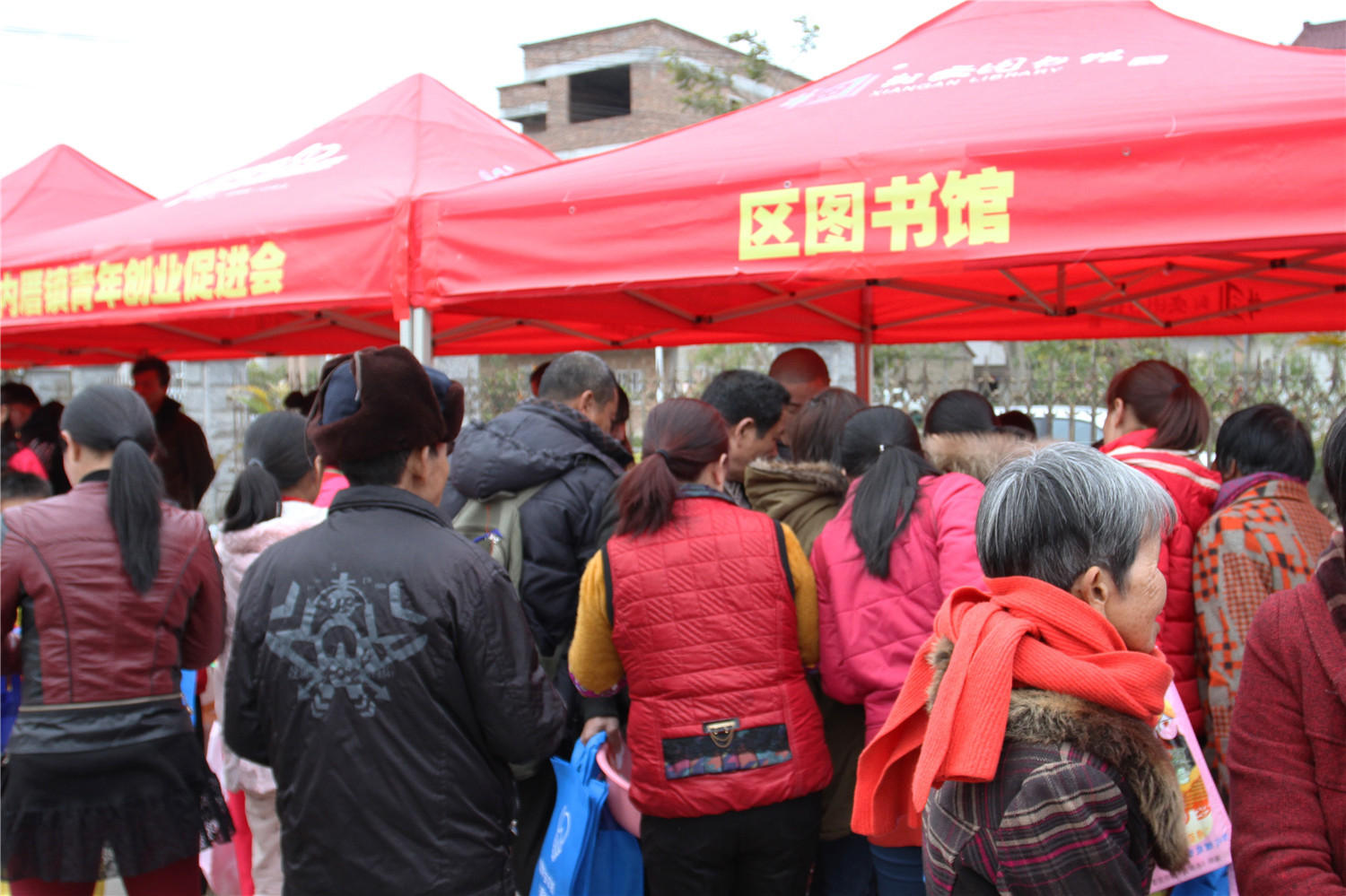 2月8日,2018年翔安区文化科技卫生“三下乡”活动启动仪式在内厝镇莲塘村宋江阵广场举行。翔安区图书馆在现场开展了“书香过大年”2018年春节走基层送服务活动,向社区群众宣传《中华人民共和国公共图书馆法》、推广“掌阅翔图”移动图书馆以及图书馆宣传等配套活动;赠送了图书馆出版发行的具有内厝地方特色的连环画《锄山英烈传》、《孔雀东南飞》等书;并分发了图书馆精心设计的带有“书吉”字样的hong包袋,每个hong包袋中都放有“新年幸运书目推荐”和精美礼品的兑奖券,受到了广大社区群众的热情参与,为他们送上了一份丰盛的文化大餐,让他们感受到浓浓的新春氛围。
