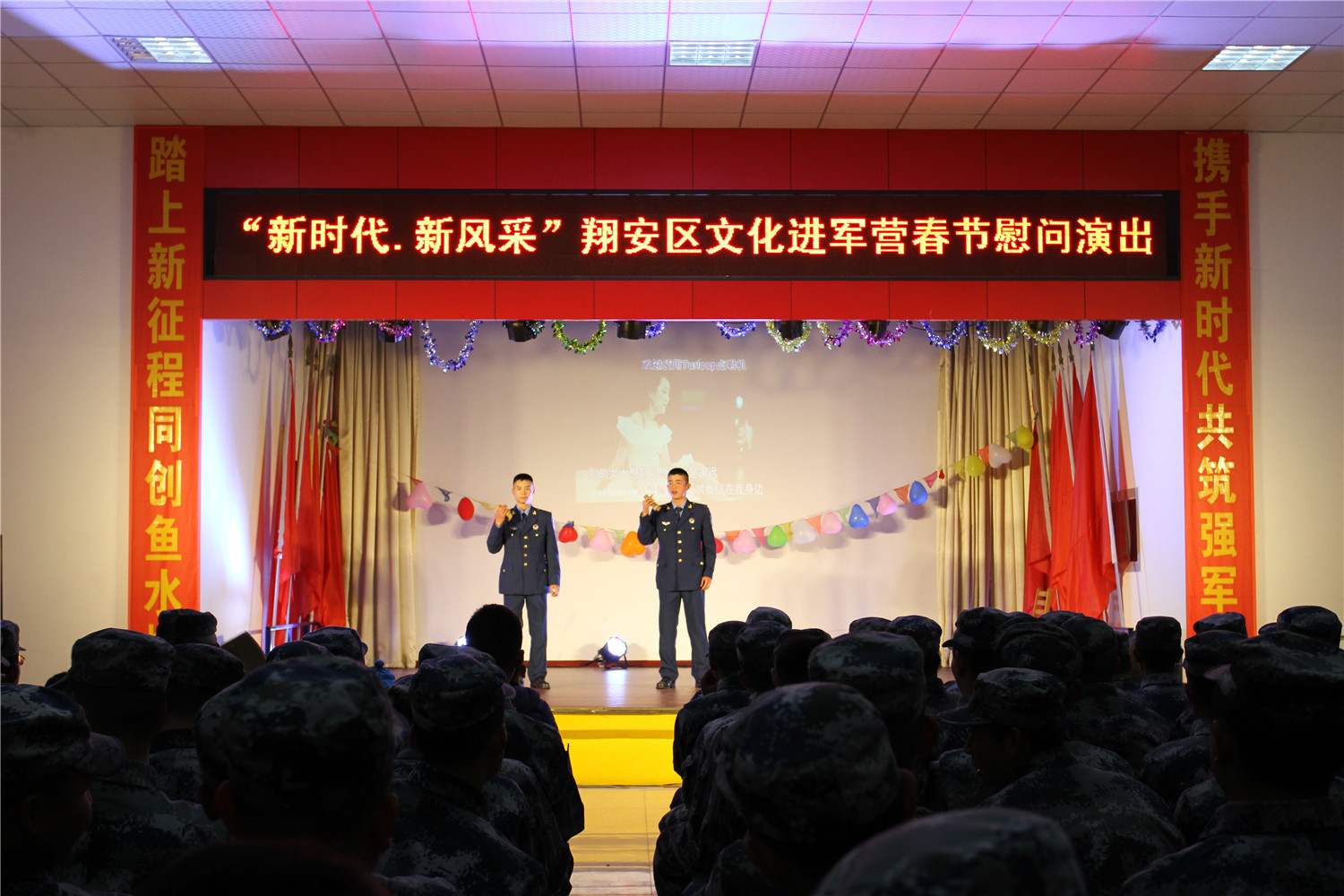 2月10日晚上7点,驻翔某部队礼堂热火朝天,翔安区图书馆联合区文化馆在这里举办“书香过大年”文化进军营2018迎新春活动。