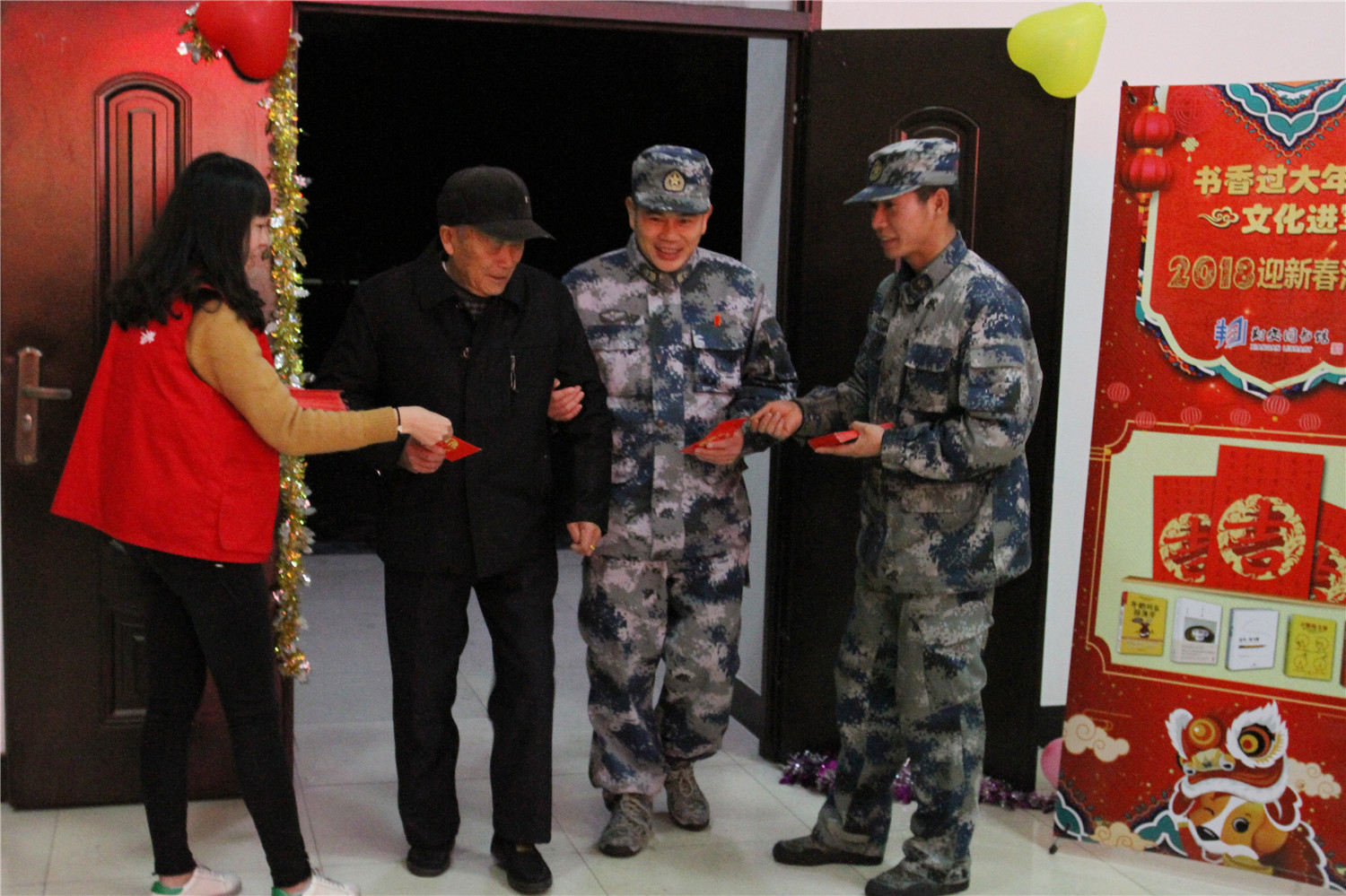 图书馆组织文化志愿者向部队官兵及家属分发精心设计的带有“书吉”字样的hong包袋,每个hong包袋中都放有“新年幸运书目推荐”和精美礼品的兑奖券。这些书目推荐均从近年来“中国好书”、“大众喜爱的50种好书”等群众喜闻乐见的书目中遴选;“hong包”的设计将传统习俗、新年祝福与书目推介相结合,寓意“书中有吉、开卷有益”。除“发hong包”活动外,还开展了“新时代·新风采”翔安区文化进军营春节慰问演出,精心编排了多个节目,与部队官兵及家属共同感受新春的喜庆氛围。