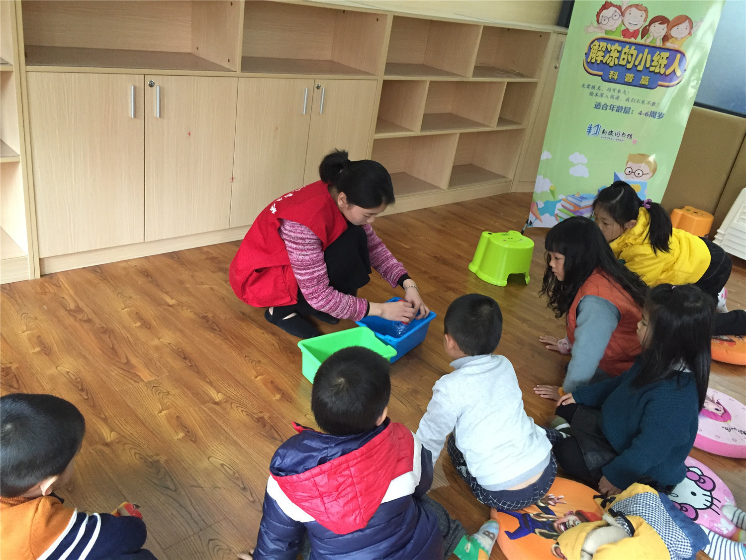 为了给小读者介绍静电科普知识,志愿者老师给小读者们准备摩擦静电的小实验,让小读者们更加直观了解静电原理。