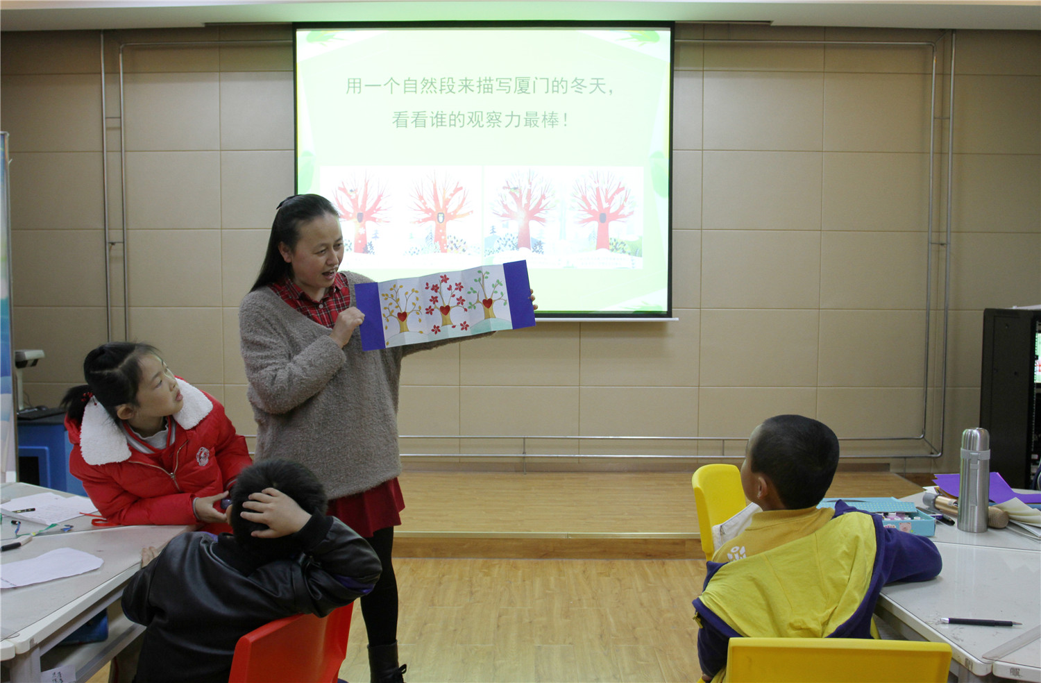 临近植树节,本次智绘书活动围绕“树”的主题展开,香橼老师首先讲述了《树》的绘本故事,这个故事以“猫头鹰”的角度从树洞里窥视繁忙的自然世界,体会春夏秋冬别样的色彩。老师现场还让小读者们以独特的角度描写厦门的春夏秋冬,同时就他们的课堂练笔进行景物描写的写作指导,教授写作方法;并指导他们发挥创意,以“大树洞洞书”为主题制作立体手工书。通过活动,让他们更喜欢图书,珍惜图书,从阅读中汲取营养,在快乐中写作,为爱读书的小读者提供了学习锻炼的机会。