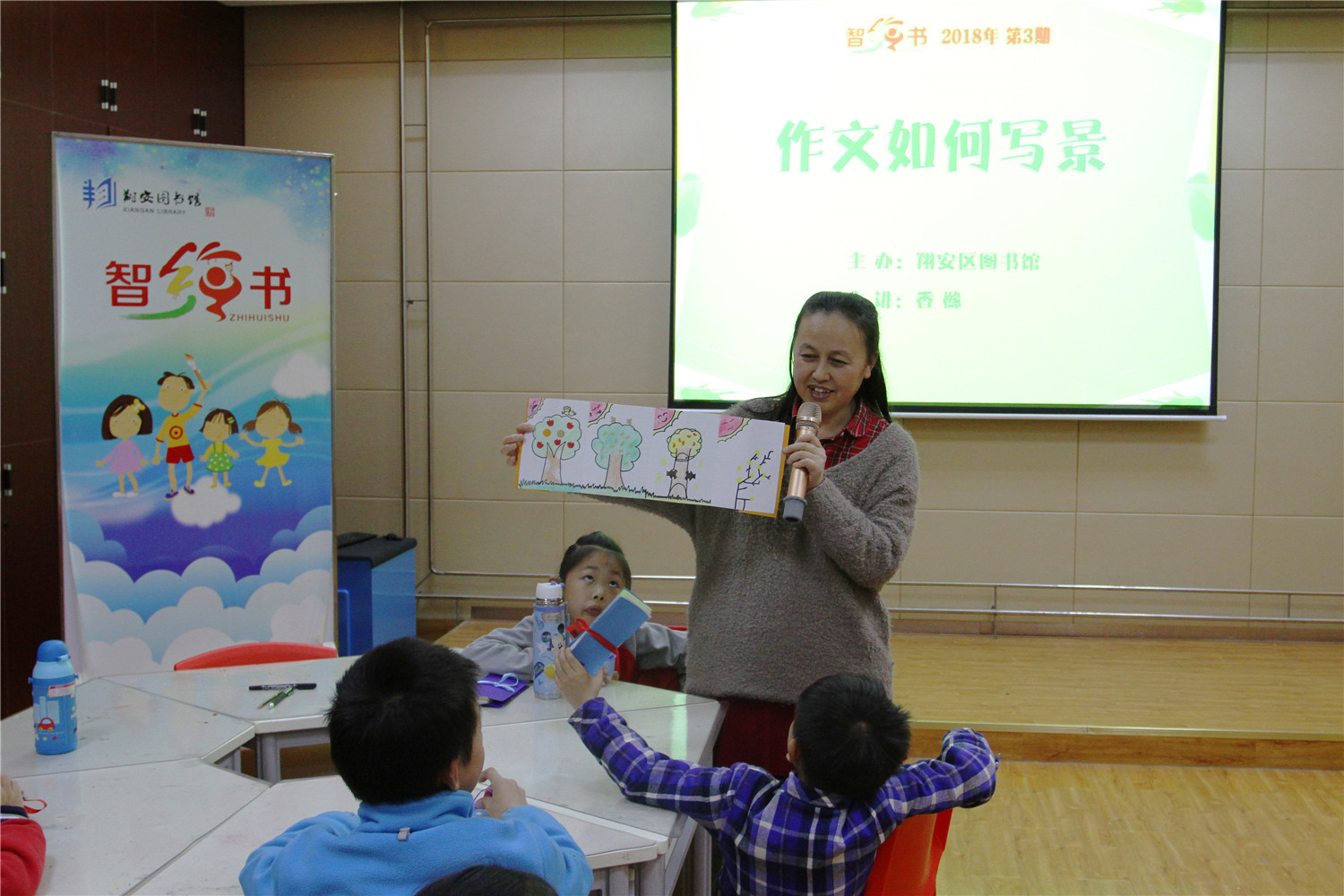 3月10日,翔安区图书馆邀请了福建省作家协会会员、编剧、儿童文学作家香橼老师为小读者们举办智绘书--“大树洞洞书”活动。