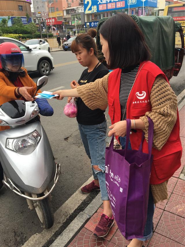 3月19日,翔安区图书馆新店分馆工作人员走出馆外,到新店镇新兴街进行“图书馆服务宣传推广”活动,现场分发图书馆宣传资料、赠送小礼品,并现场介绍图书馆馆址、借阅手续、读者活动等问题,吸引了不少周边群众对图书馆的关注。