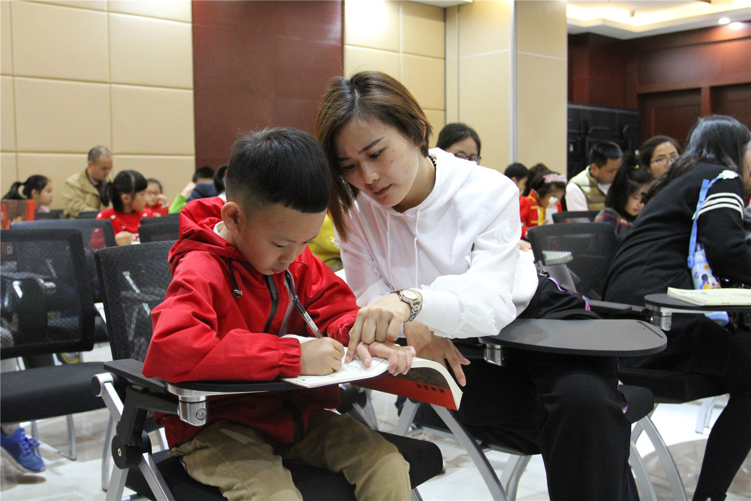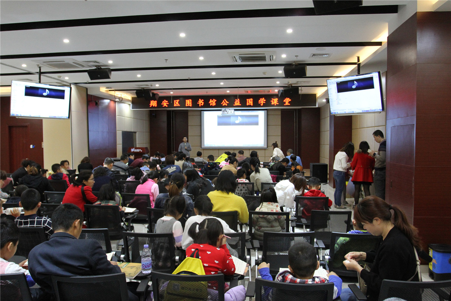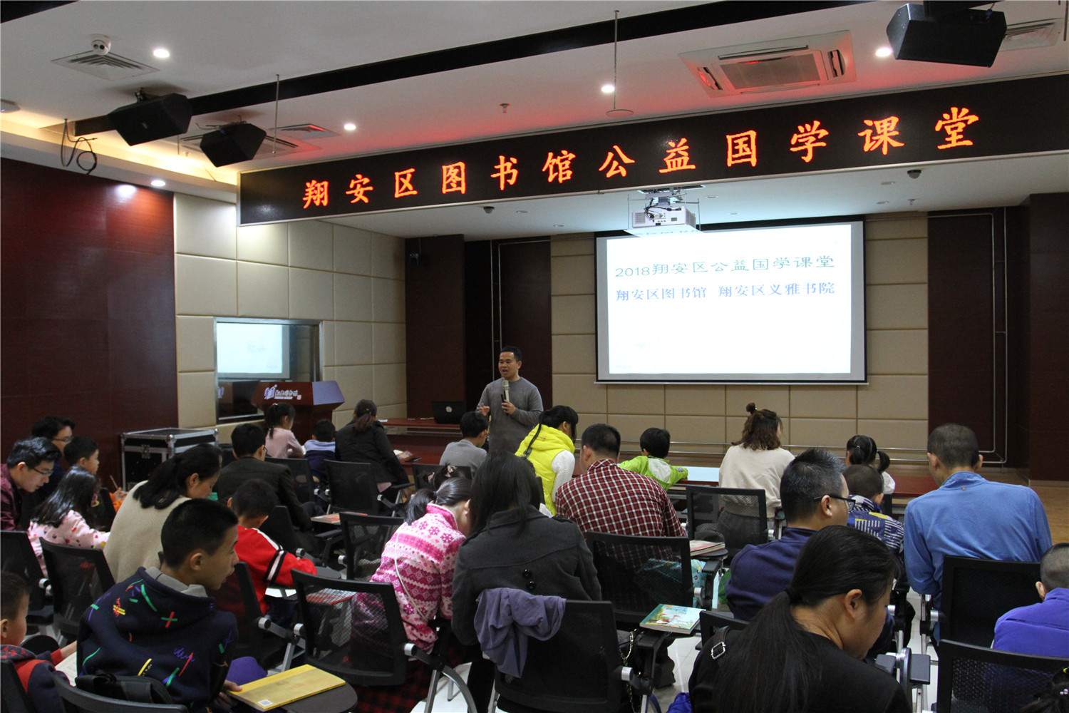 3月24日上午,公益国学课堂第二期活动准时举办在翔安区图书馆报告厅举办,70多对亲子家庭到场参加,现场座无虚席。本次活动由义雅书院具有十四年国学教育实践经验的力禾老师主持,他作了《一招吃遍天——从高中课改中洞先机》的讲座分享,并指导在座读者诵读《中庸》、《千家诗》等国学经典。课堂上有分享、有讨论、有答惑,由浅入深,亲子共学,既诵读经典、学习圣贤的智慧,又在德能分享活动中帮助读者树立正确的知见。