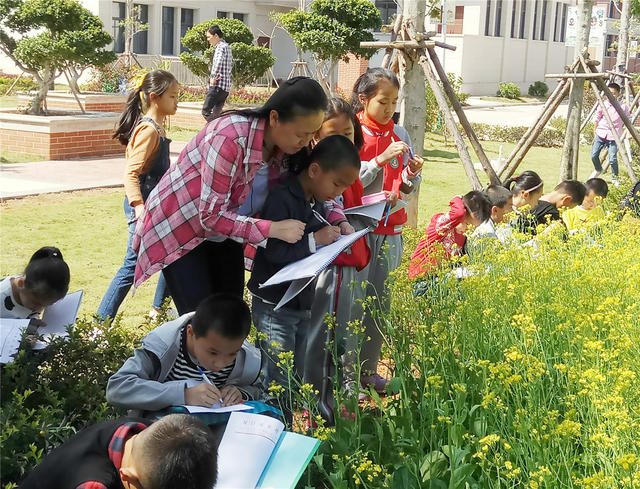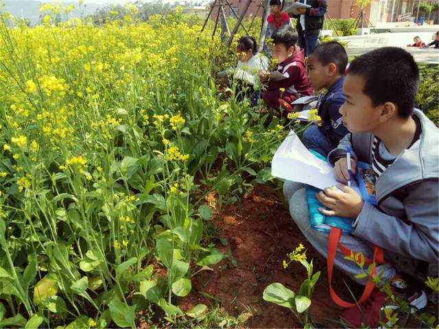 美丽的新圩学校有一片魔法田地——油菜花田,本次智绘书活动围绕“油菜花”的主题展开,香橼老师首先讲述了《马厩旁的油菜花》的童话故事,这是一个在光芒万丈的油菜花田里诞生的油菜花的故事,通过温暖的描述,让小读者们感受生命和自然的美好。活动当天,香橼老师还带领小读者们走进油菜花田现场写生,并以“校园里的油菜花”为主题创作一篇童话故事,同时对他们的作品进行写作指导,教授写作方法;还指导他们制作立体的“油菜花”手工书,经过精心剪裁,一朵朵黄橙橙的“油菜花”书在美丽的花田中“绽放”。