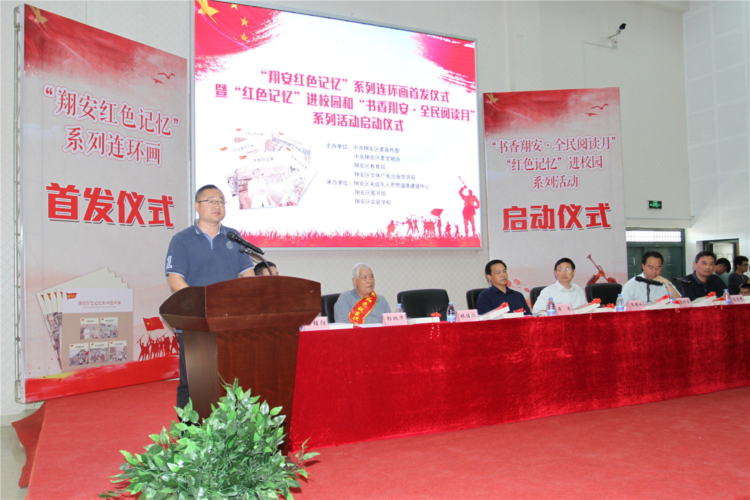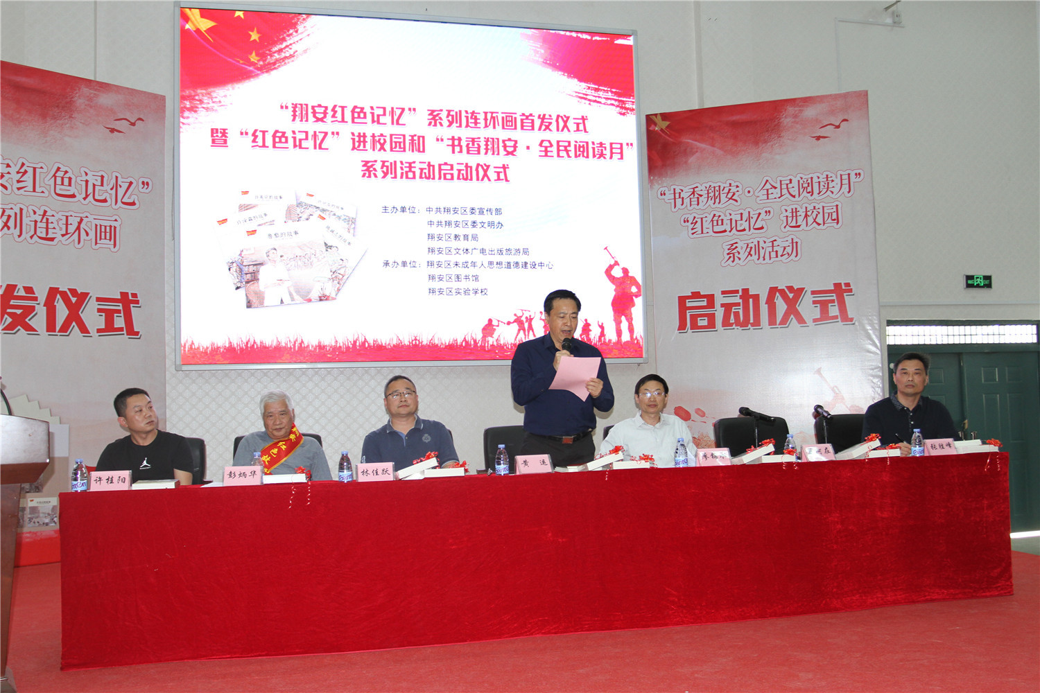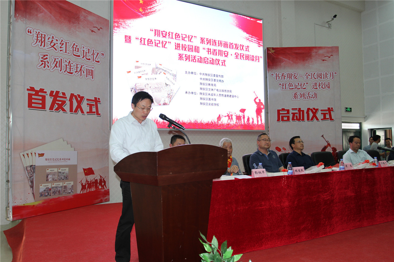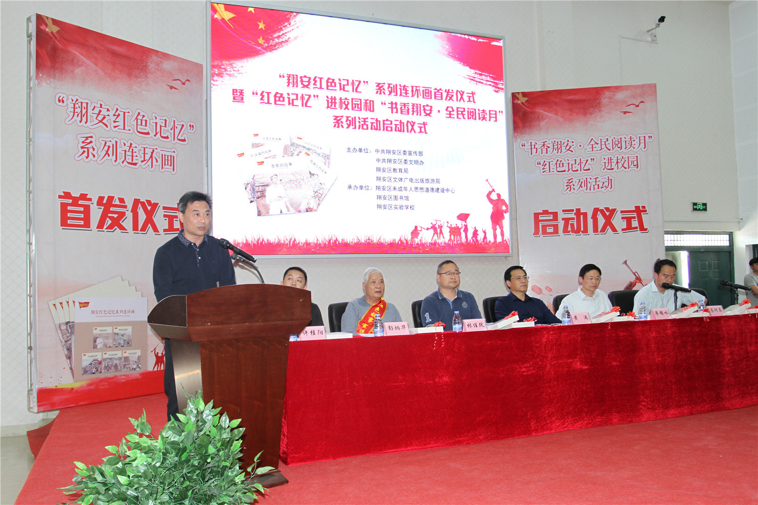 区委常委、宣传部长黄运宣布“翔安红色记忆”系列连环画正式出版发行、翔安“红色记忆”进校园和“书香翔安·全民阅读月”系列活动启动