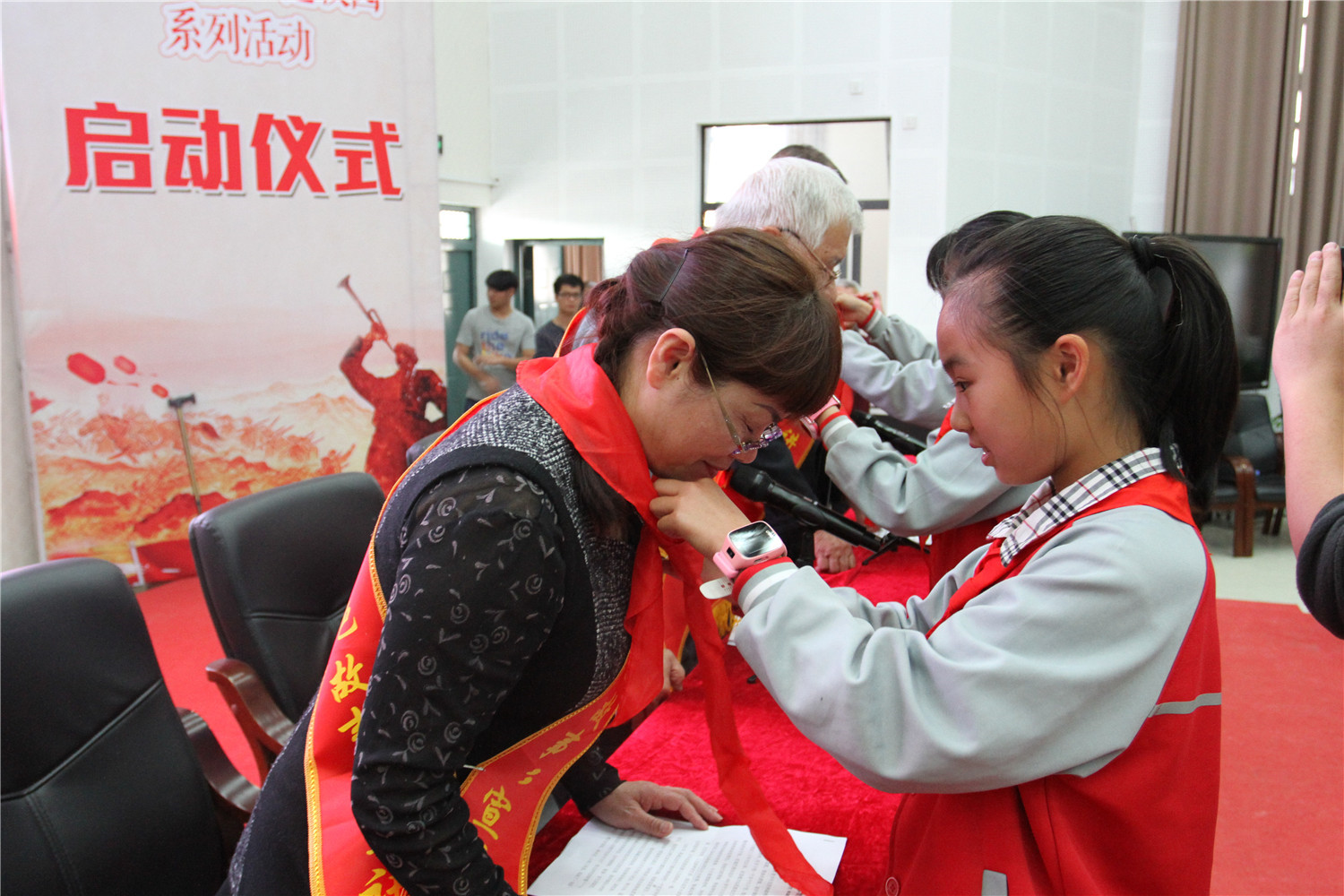 首场翔安“红色故事”校园巡讲,少先队员为翔安“红色记忆”宣讲团佩戴红领巾