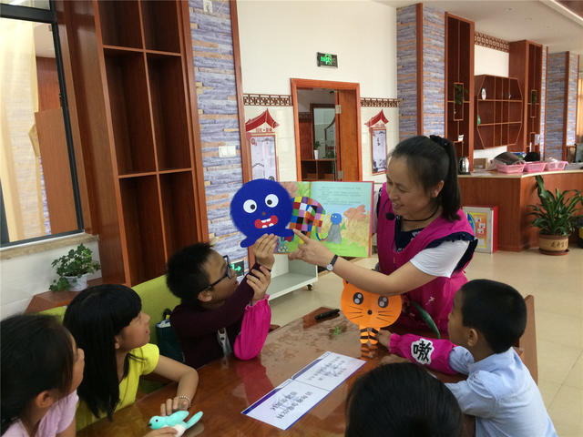 感受完上期智绘书的精彩,小读者们期待着香橼老师的再次到来。本期智绘书大家一起围坐在新圩学校的大榕树下,香橼老师穿着她亲手缝制的“故事衣”为小读者们讲述《艾玛与小怪兽》的绘本故事,让他们身临其境地扮演着各种动物角色体验整个故事。回到图书馆,香橼老师指导小读者们进行童话的创作,并以《 * * 和小怪兽》为题创作一篇童话故事,同时对他们的作品进行写作指导,教授写作方法;还指导他们制作立体的“小怪兽”手工书,经过精心剪裁,一只只富有创意、天马行空的“小怪兽”书在小读者们的手中诞生了。