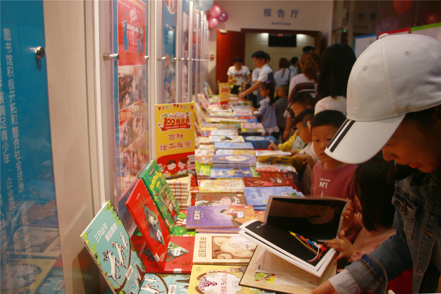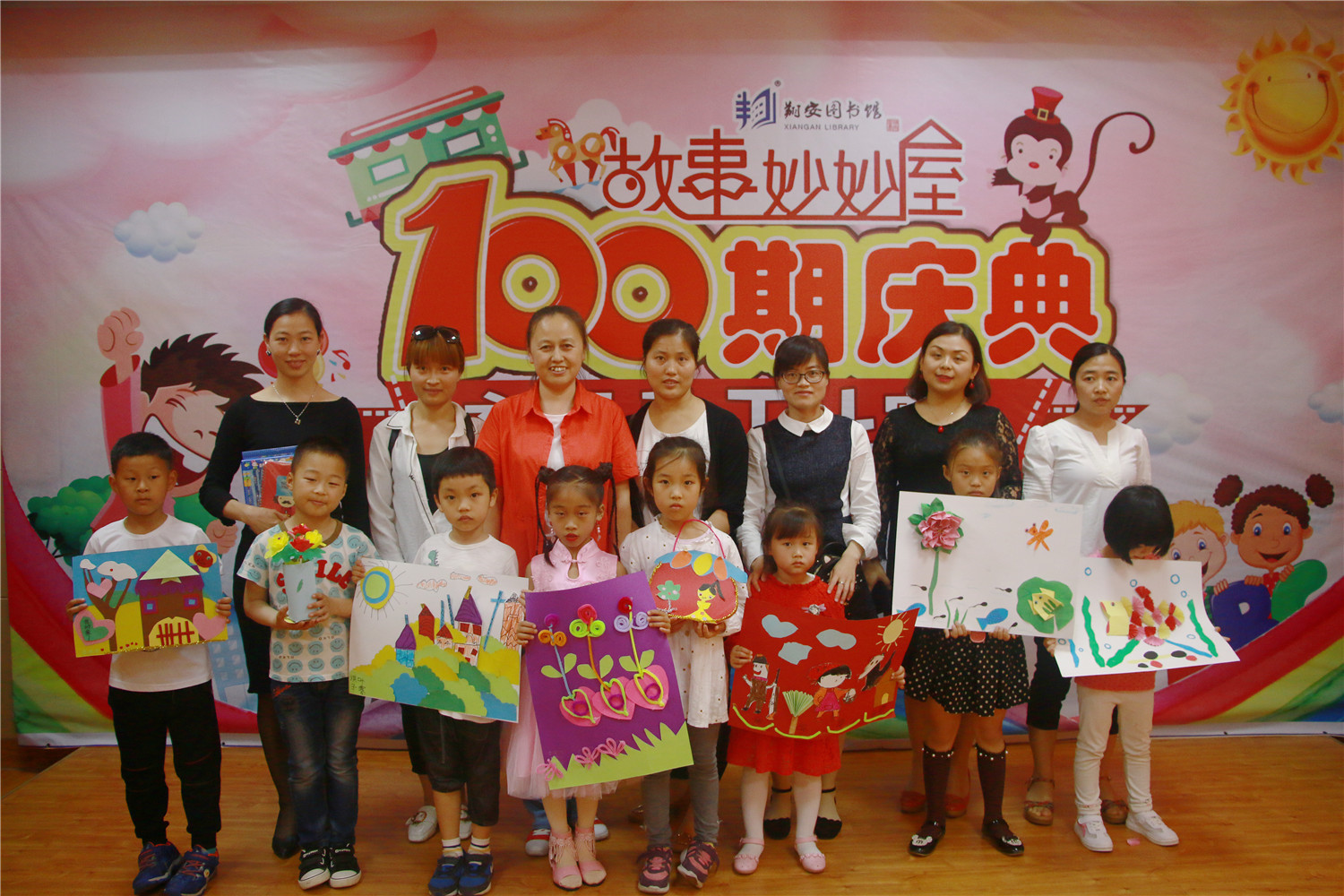 活动当日,图书馆精心挑选了100期“故事妙妙屋”活动现场照片、手工作品照片、参与过活动的100名小读者照片以及“100”字心愿墙制作成18米的庆典墙进行展示;现场推荐“故事妙妙屋”100期的所用绘本供借阅;开展庆典分享活动,让读者线上分享喜悦。同时,“故事妙妙屋·分馆版”也在新店分馆和友达邻里书屋举办。