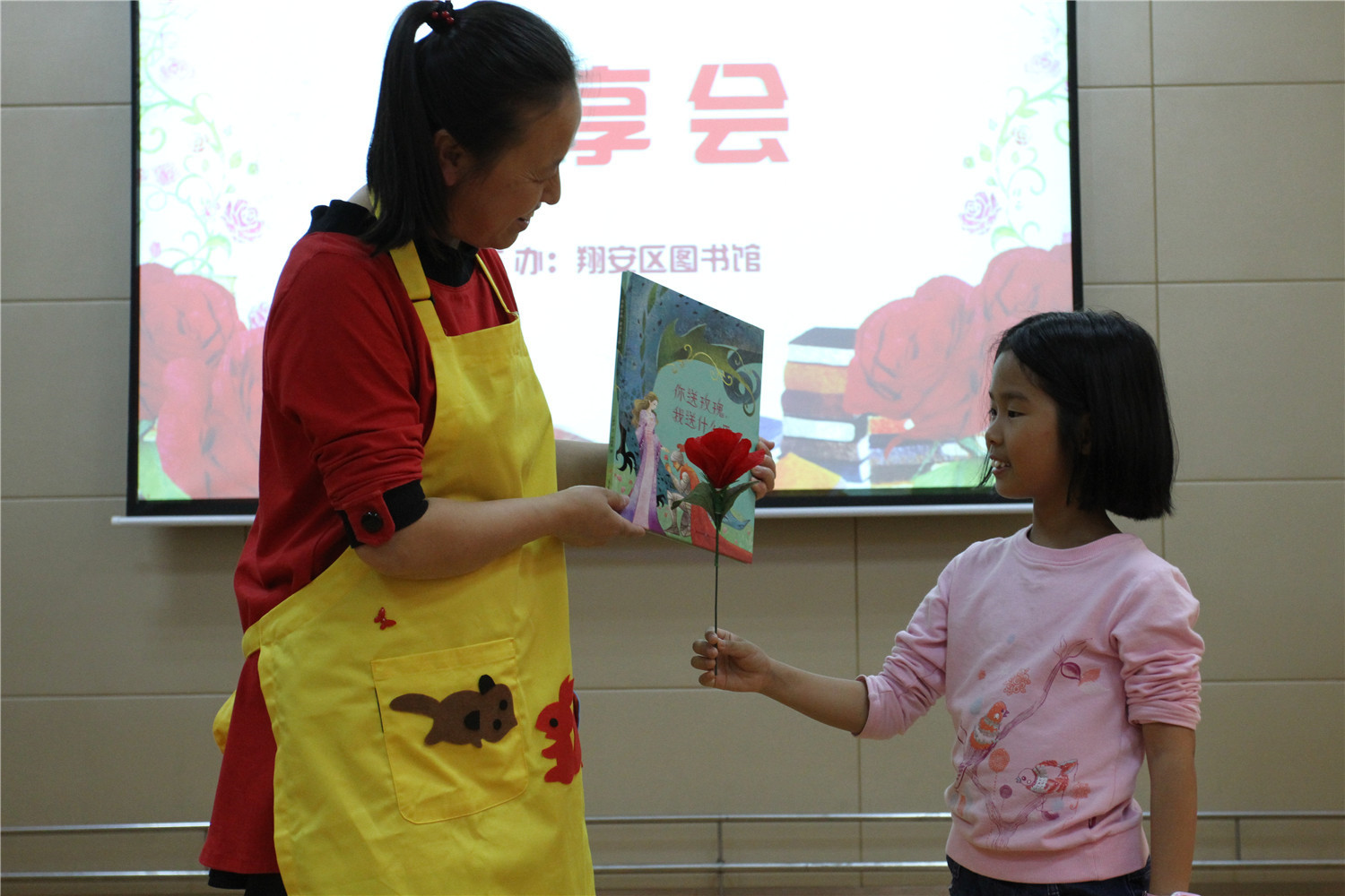 4月23日,是塞万提斯、莎士比亚、维加三位文学大师的辞世纪念日,也是美国作家纳博科夫、法国作家莫里斯·德鲁昂和冰岛作家、诺贝尔文学奖得主拉克斯内斯等多位文学家的生日,这样的巧合,让人们能够在世界读书日这一天,深刻认识到读书的重要性。本次智绘书活动,香橼老师首先为小读者们讲述了《你送玫瑰,我送什么呢》的绘本故事,让小读者了解世界读书日的由来,并指导制作了“玫瑰”造型的手工书。为了致敬文学大师及其作品,她向小读者们推荐了几本好书,同时也让小读者们在图书馆内找自己喜欢的书,指导他们撰写好书推荐,并进行馆藏图书分享。