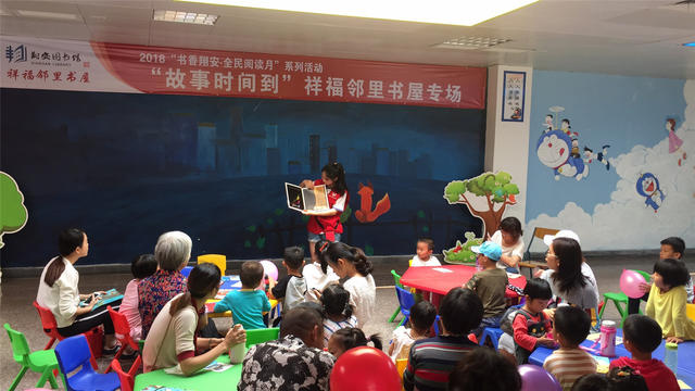 4月29日,翔安区图书馆祥福邻里书屋举办了“故事时间到”活动,受到了儿童公园广大读者的喜爱。精彩的故事吸引了一批又一批的小读者,志愿者老师向他们讲述了《我妈妈》、《彩虹色的花》、《有个性的羊》等绘本故事,小读者们都听得津津有味。