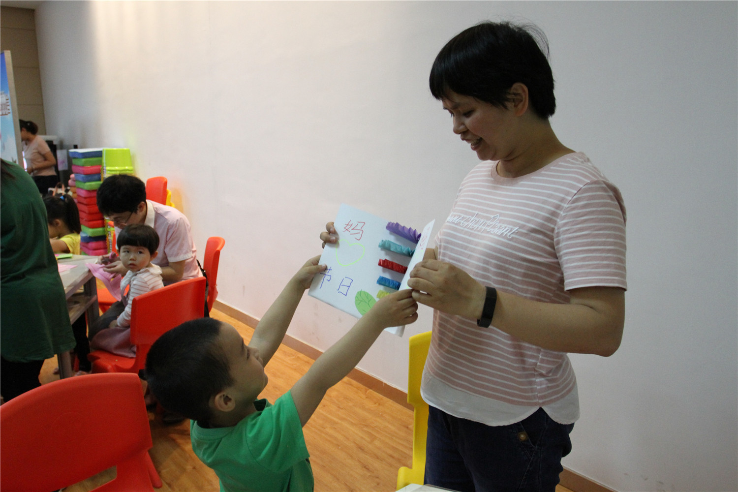 为了迎接5月13日“母亲节”的到来,5月4日,翔安区图书馆新曦邻里书屋邀请学校二年四班的王利杰老师为小读者们开课了,她通过讲述《妈妈的奶》绘本,让他们尝试大胆地说出对妈妈的爱,体会妈妈的辛劳,为妈妈做一些力所能及的事情,尊重妈妈的情感。除绘本讲述外,老师还指导小读者们制作一张对妈妈表达爱的小贺卡。