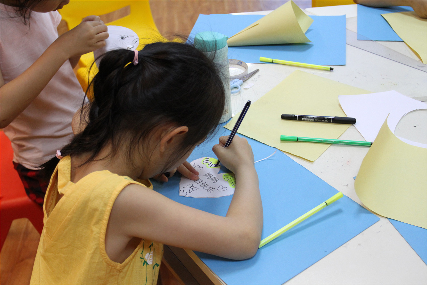 5月12日,翔安区图书馆新曦邻里书屋邀请了福建省作家协会会员、编剧、儿童文学作家香橼老师为邻里书屋的小读者举办“智绘书·校园版”活动——送给妈妈的康乃馨。在这芬芳的五月第二个星期天,香橼老师用《我妈妈》这绘本讲述了妈妈的伟大,也让小读者们学会体会妈妈的爱与付出。香橼老师还指导他们以《我最爱的人》为题、用发问的形式构思一篇作文,并指导制作了一本写满妈妈的故事和对妈妈的爱的“康乃馨”手工书,这是一份最好的母亲节礼物!