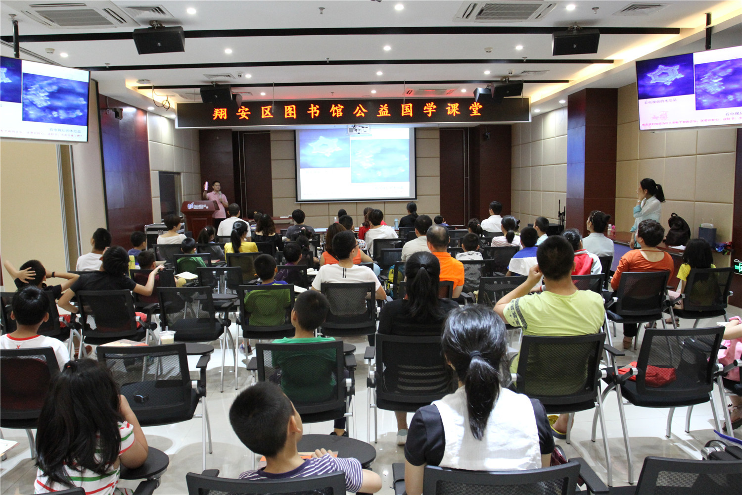 5月12日上午,公益国学课堂第六期活动在翔安区图书馆报告厅举办,现场座无虚席。本次活动由义雅书院具有十四年国学教育实践经验的力禾老师主持,他作了“帮孩子找回心灵宁静的角落——儿童静定专注训练”的德能讲座分享,并指导在座亲子家庭的读者诵读《中庸》、《千家诗》等国学经典。课堂上有分享、有讨论、有答惑,由浅入深,亲子共学,既诵读经典、学习圣贤的智慧,又在德能分享活动中帮助读者树立正确的知见。