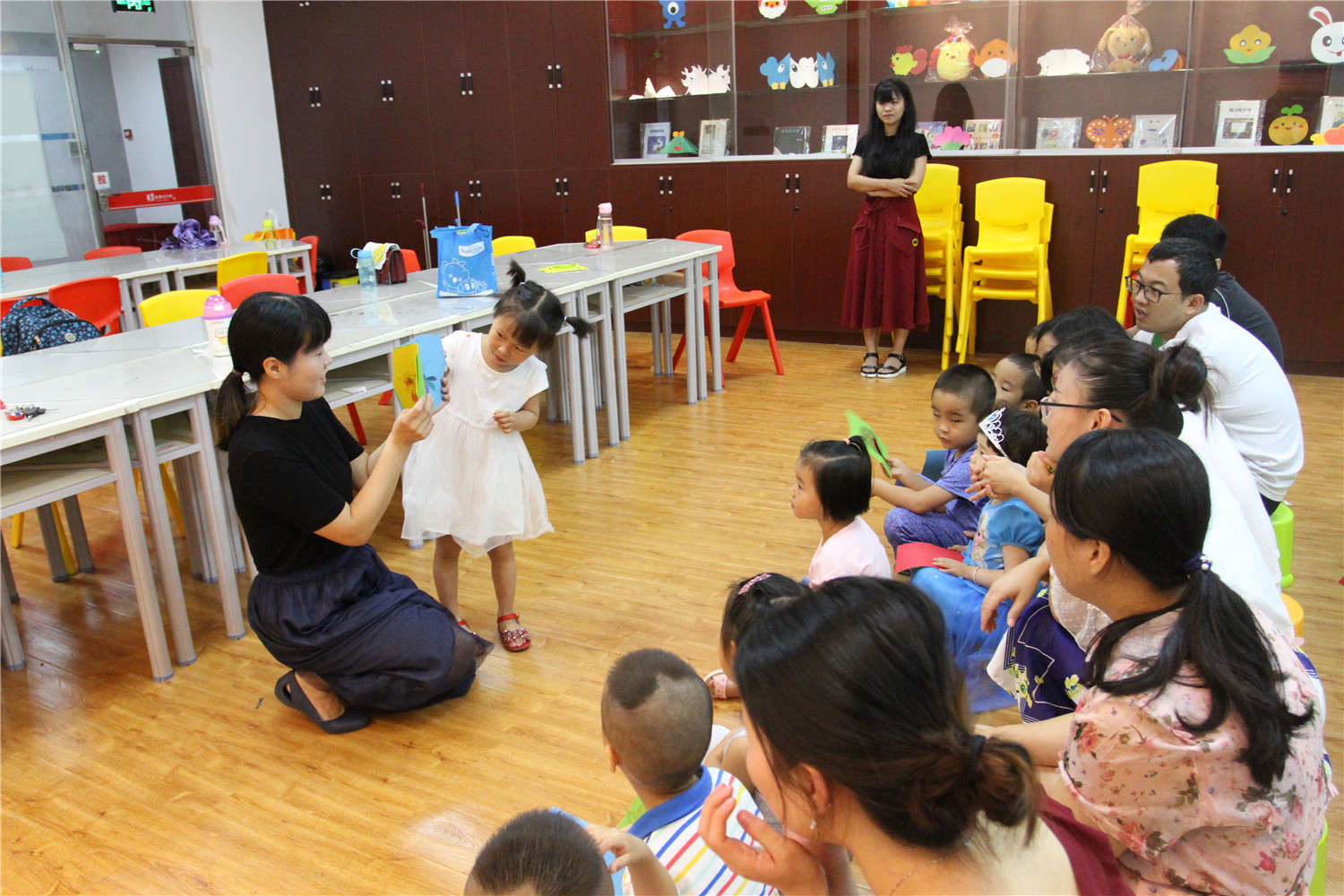 5月27日,六一节即将来临,翔安区图书馆在二楼综合活动室举办了“亲子阅读坊”庆六一专场活动。翔安区新店第二中心幼儿园的2名教师志愿者为到场的低幼小读者和家长带来了《试试你的眼力吧》的绘本故事,让他们通过有趣的洞洞书,培养观察力和想象力。老师还指导他们发挥创意制作属于自己的“洞洞书”。为庆祝儿童节,老师组织亲子玩“你比我猜”的小游戏,并由图书馆为小读者们分发小礼品,让他们过上一个有趣的六一。活动结束后,老师讲述了各式各样的绘本,并与家长交流,指导亲子阅读。