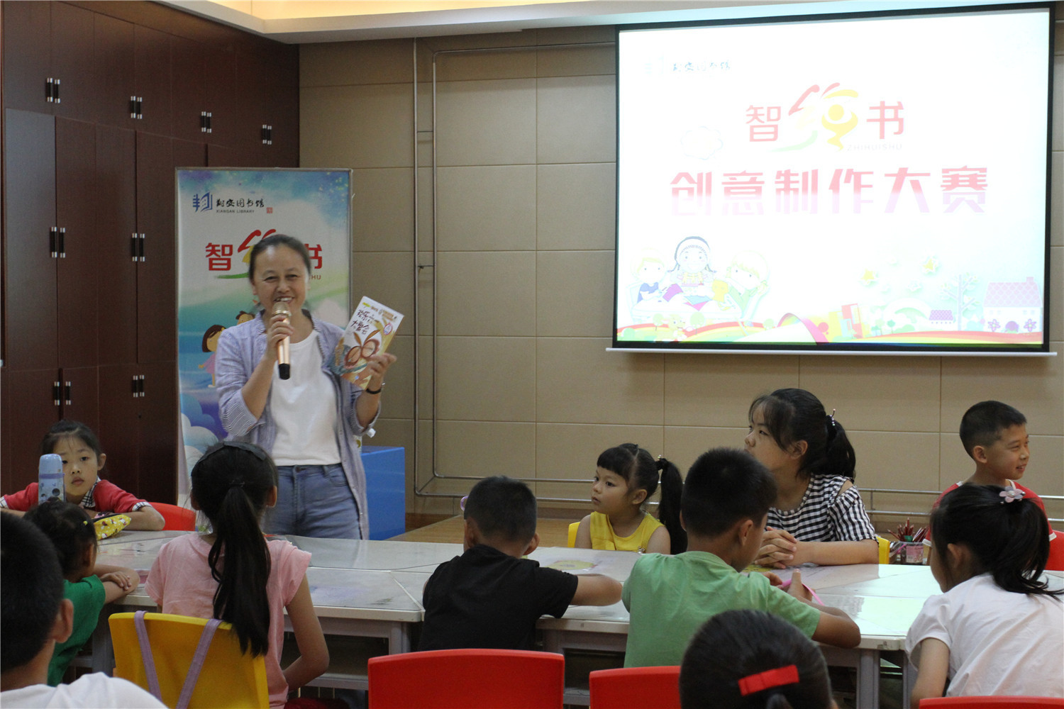 6月2日,翔安区图书馆邀请了福建省作家协会会员、编剧、儿童文学作家香橼老师为小读者们举办智绘书——“欢乐六一大聚会”活动。为让参与“智绘书”的小读者们过上一个有意义的六一儿童节,本次活动别具一格,上午举办了“智绘书”创意制作大赛,评选优秀制作进行颁奖。值得一提的是,活动首次独创的卡剧表演《欢乐六一大聚会》绘本故事,让小读者们自己当导演、演员、配音,利用卡纸剪成的动物形象完成一个绘本剧表演。下午是特别的观影活动,小读者们一边品尝美味的蛋糕,一边观赏迪士尼首部以国家地域拍摄的自然题材电影《我们诞生在中国》,小读者们都度过了一个欢乐的六一儿童节。活动中,还由图书馆活动部郑福龙为香橼老师颁发“智绘书”阅读推广活动的指导老师聘书。