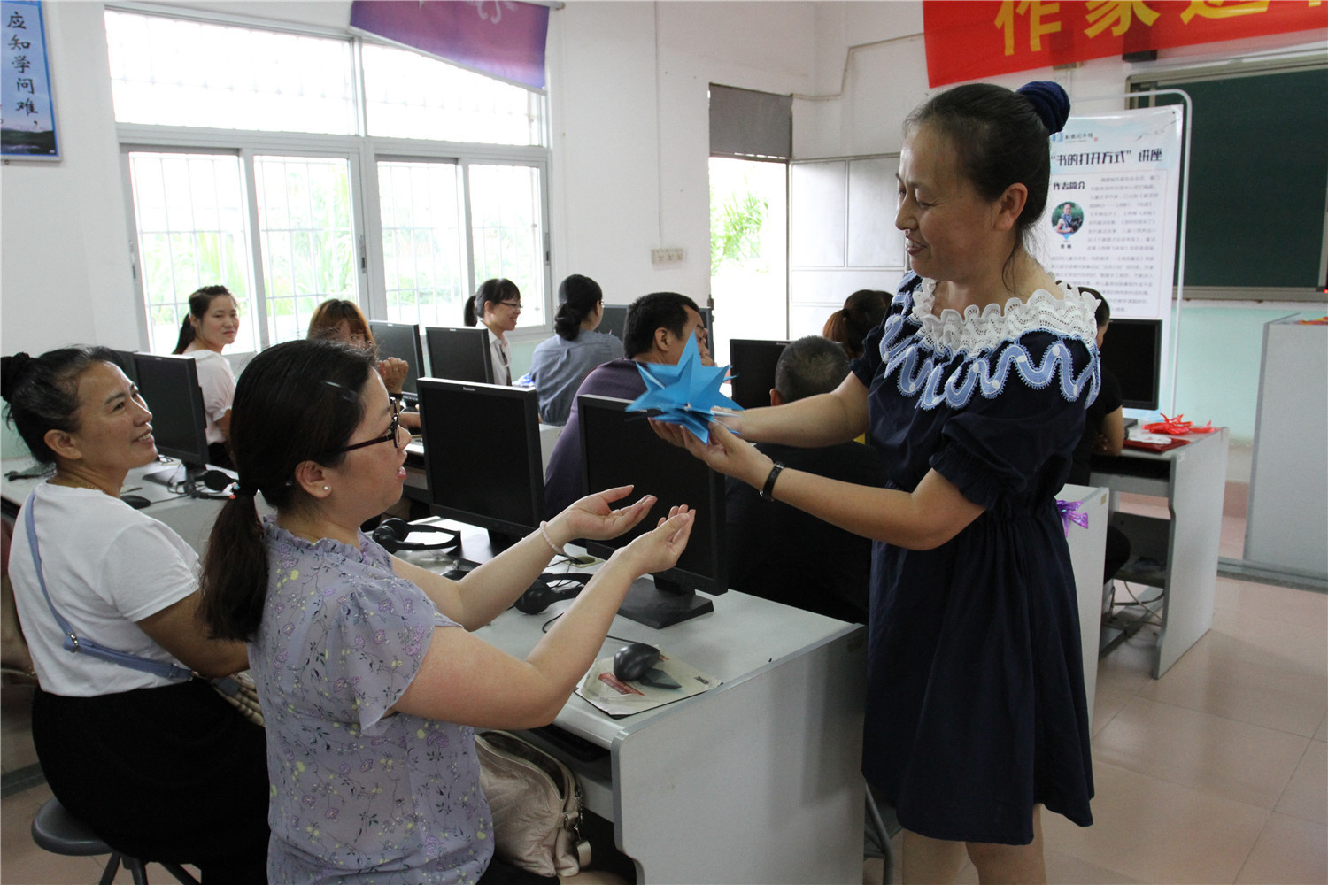 6月1日,翔安区图书馆邀请了福建省作家协会会员、编剧、儿童文学作家香橼老师走进翔东小学为学生们举办智绘书·校园版第9期活动——蛋糕书。本期“智绘书”以“六一”为主题,香橼老师首先为学生们讲述了《六一欢乐大聚会》的绘本故事;手工制作环节,指导他们制作一本“蛋糕书”手工书,通过精心剪裁,一个个“诱人”的立体蛋糕书在学生们手中呈现。正值六一儿童节,香橼老师还为学生们分发小蛋糕作为小礼物。除此之外,香橼老师还为学生家长作了《书的打开方式》讲座。