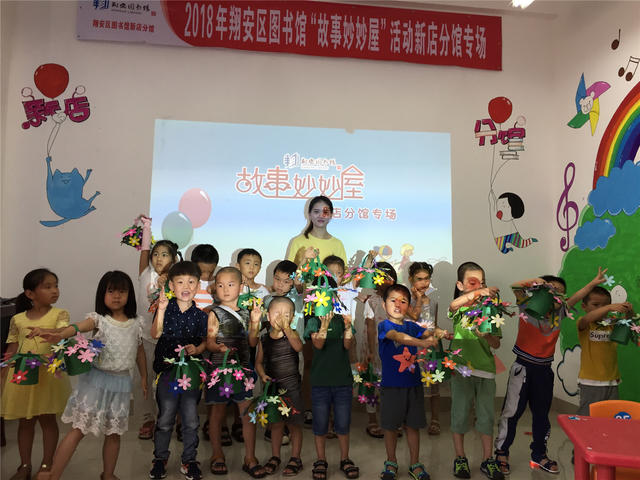 5月27日,翔安图书馆新店分馆举办了“故事妙妙屋·分馆版”第6期活动。此次老师为小读者讲述了《鸭子骑车记》的绘本故事,还指导小读者们用卡纸制作精致的花篮。