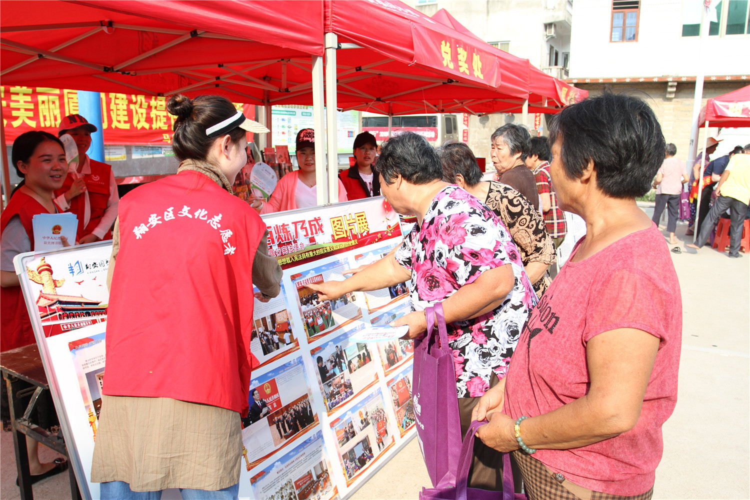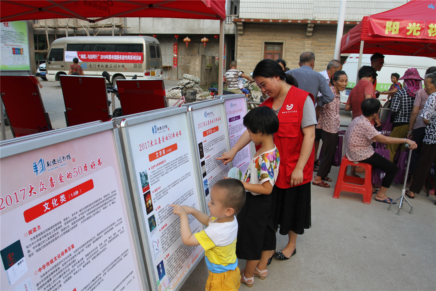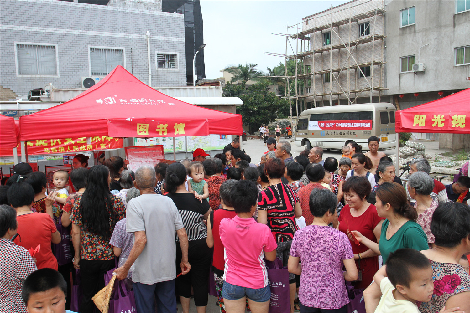 5月29日,翔安区图书馆在马巷镇蔡浦社区举办92580就业我帮您“三送”进社区暨文化下乡活动,此活动亦是2018年“阅读,在路上”图书馆服务宣传周系列活动之一,图书馆组织文化志愿者开展了现场办证借书、“掌阅翔图”移动图书馆推广、图书馆宣传、《中华人民共和国公共图书馆法》宣传、《中华人民共和国公共服务保障法》宣传、《九鼎重器 百炼乃成》弘扬宪法精神图片展、2017年大众喜爱的50种好书推荐巡展等,还印发了宣传单2000多份,开设了“公共图书馆法”“公共服务保障法”有奖互动问答,受到了广大社区居民的热烈欢迎和积极参与。