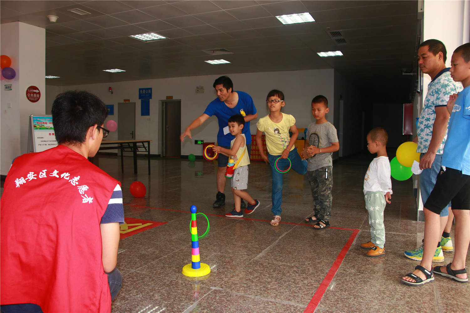 为庆祝“六一”国际儿童节,翔安区图书馆结合服务宣传周(5月最后一周)于6月2日上午在祥福邻里书屋举办“畅游书海 欢乐六一”亲子游园活动,现场有百余对家庭参与了活动。舞台上,由小朋友上台展演,包括讲故事、舞蹈、朗诵、演绘本剧等,让小朋友们从小热爱阅读、展现自我。游戏区里,各个家庭在图书馆精心准备的游园活动中,旗开得胜、比眼力、圆环接力……或新颖或怀旧的小游戏让现场沉浸在一片欢乐的海洋中。图书馆还精心准备了“海洋世界”互动体验等,让读者在欢度六一的同时,走进和了解图书馆、分馆邻里书屋,充分运用图书馆资源,增长知识。