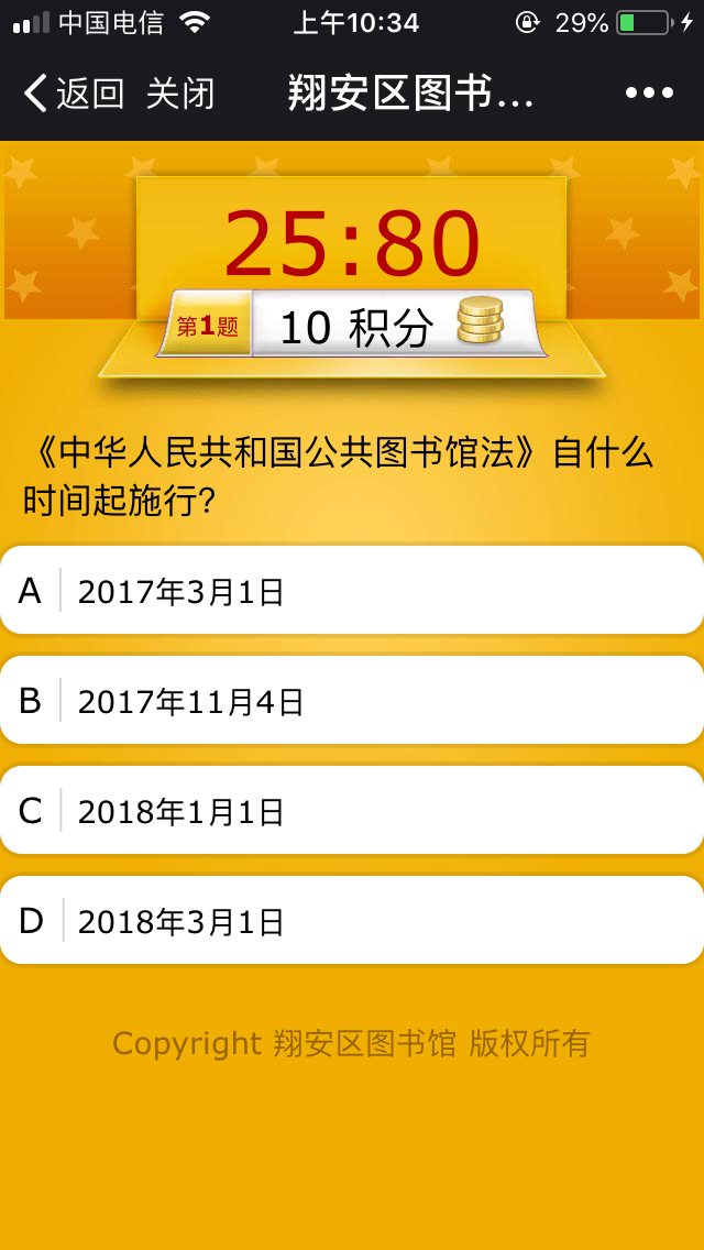 《中华人民共和国公共文化服务保障法》线上有奖答题