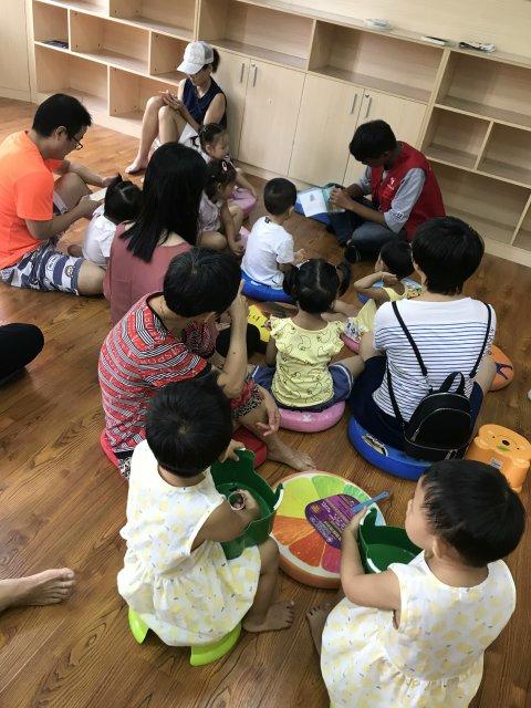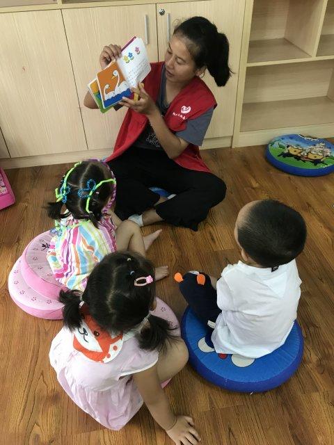 此次为小读者带来服务的是来自厦门海洋职业技术学院的志愿者,他们通过精心组织的绘本讲述、游戏互动、律动带领、亲子互动等小环节,跟现场小读者热情交流,分享快乐。