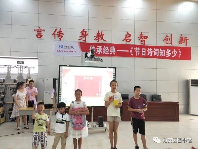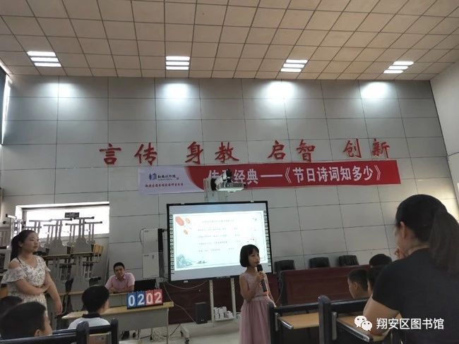 9月22日,翔安区图书馆滨安邻里书屋在翔安区第二实验小学乐学楼多功能教室开展了“传承经典——节日诗词知多少”活动,古诗词是中华民族的文化瑰宝,代代传诵,千古不衰,这次诗词大会活动,不仅丰富了学生校园文化生活,普及了诗词知识,也是对学生诗词掌握情况的一次大检查。