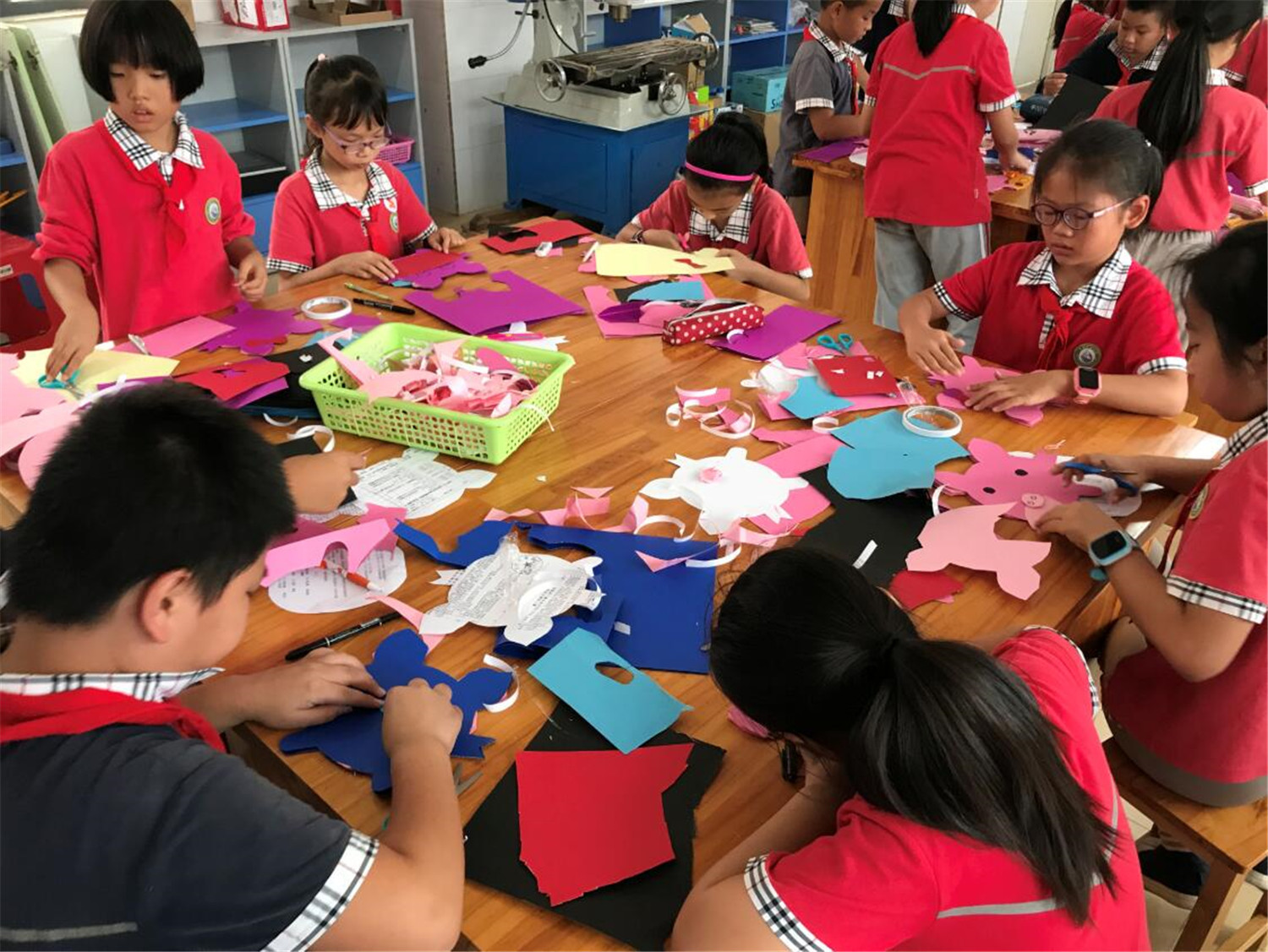 香橼老师首先为同学们讲述了《朱家故事》的绘本,引导他们在绘本的基础上,展开想象,补充语言,并学会制作写作思维导图,让他们从阅读中发挥想象、捕捉灵感。手工书制作环节,老师指导小读者们以“小猪”为封面制作手工书,一本本憨态可掬的智绘书,把活动推向了高潮。