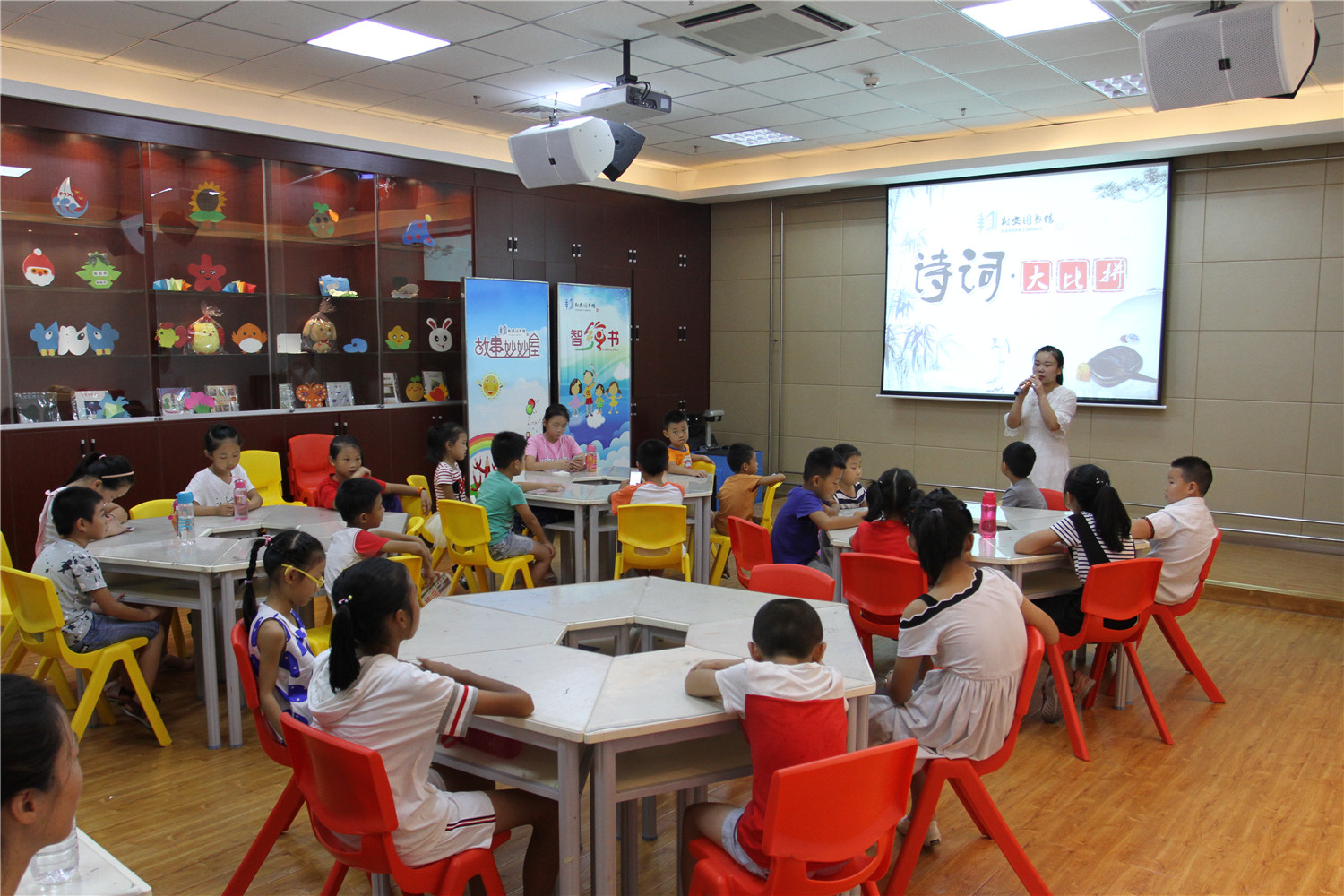 7月29日,翔安区图书馆在二楼综合活动室举办了“诗词大比拼”——《水果诗词知多少》互动学习体验活动,活动由福建沐科信息技术有限公司协办。现场老师为小读者们带来了“水果诗词大比拼”、“诗词知识比赛”、“数字互动大比拼”等丰富多彩的学习体验环节,并为表现优异的小读者颁发奖品,让他们在快乐的游戏互动中学习知识,感受诗词带来的乐趣。值得一提的是,读者还可进入“翔安区图书馆”的微信公众平台,点击“在线阅读”的“中华诗词库”栏目,学习海量诗词。