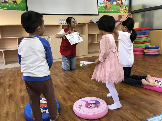 此次为小读者带来服务的是来自厦门海洋职业技术学院的志愿者,他们通过精心组织的绘本讲述、游戏互动、律动带领、亲子互动等小环节,跟现场小读者热情交流,分享快乐。