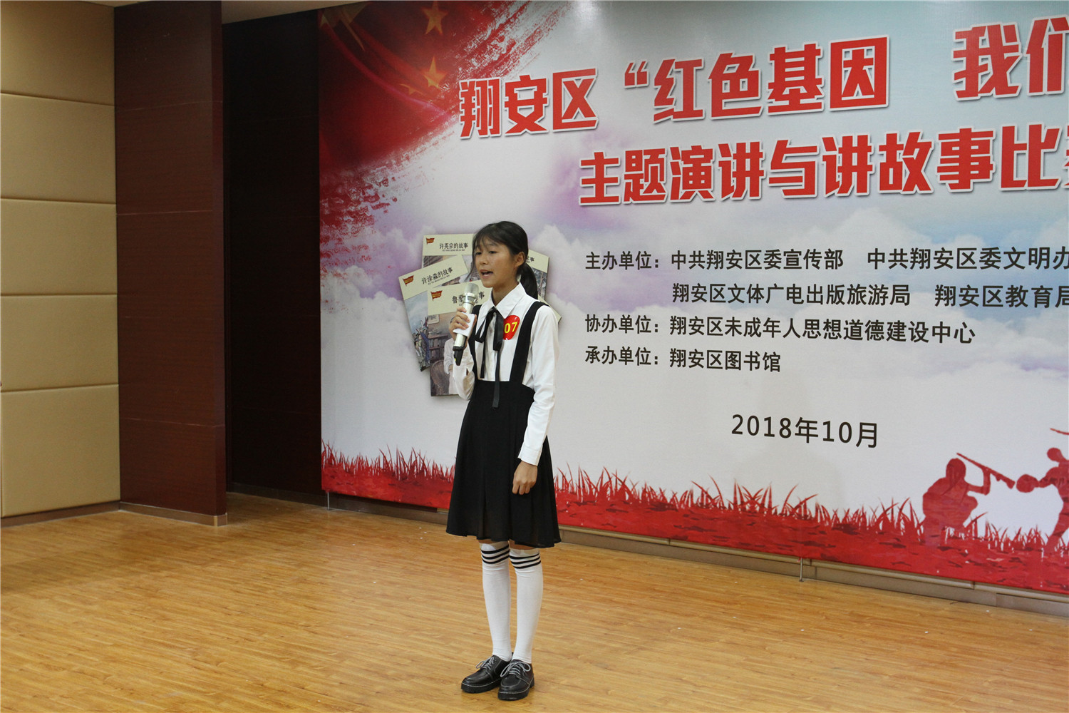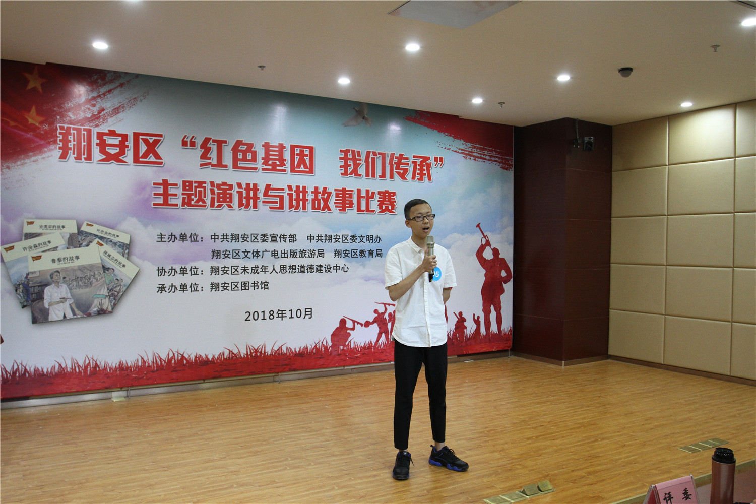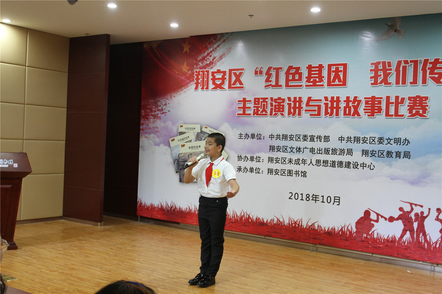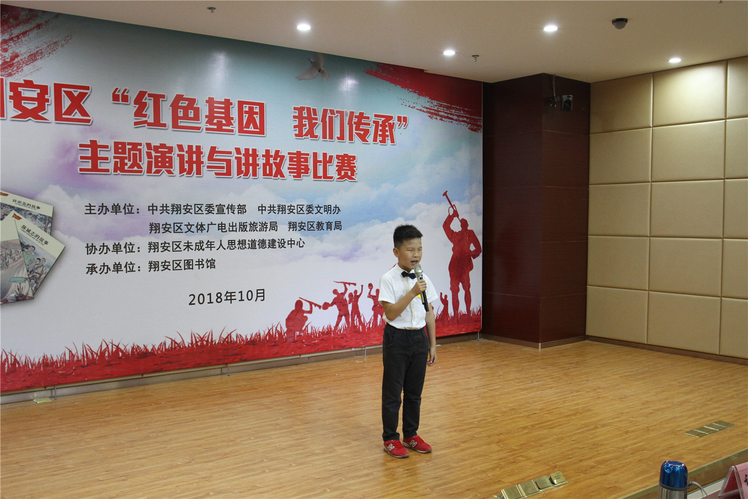 10月26日,由中共翔安区委宣传部、中共翔安区委文明办、翔安区文体广电出版旅游局、翔安区教育局联合举办的翔安“红色记忆”进校园系列活动——翔安区“红色基因 我们传承”主题演讲与讲故事比赛,全区共39名中小学生参加了比赛。
