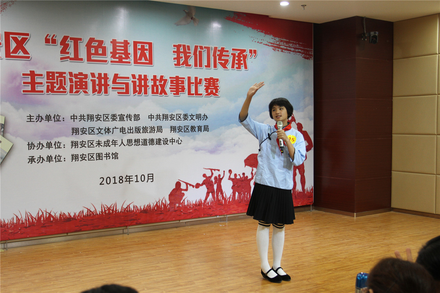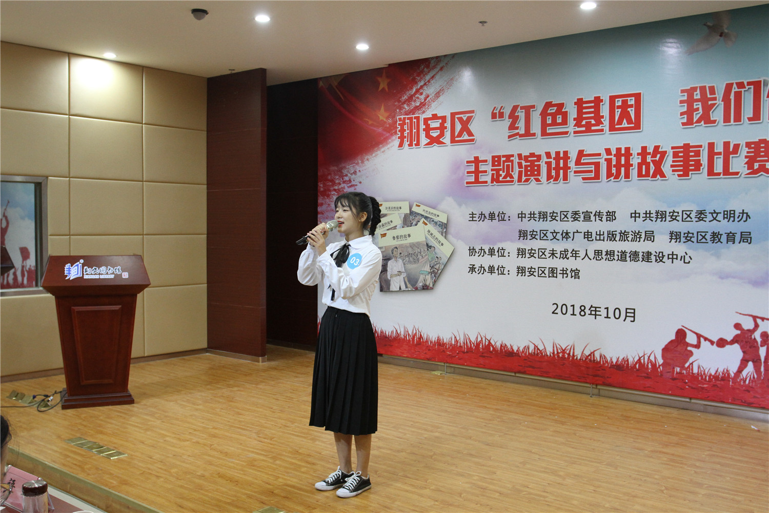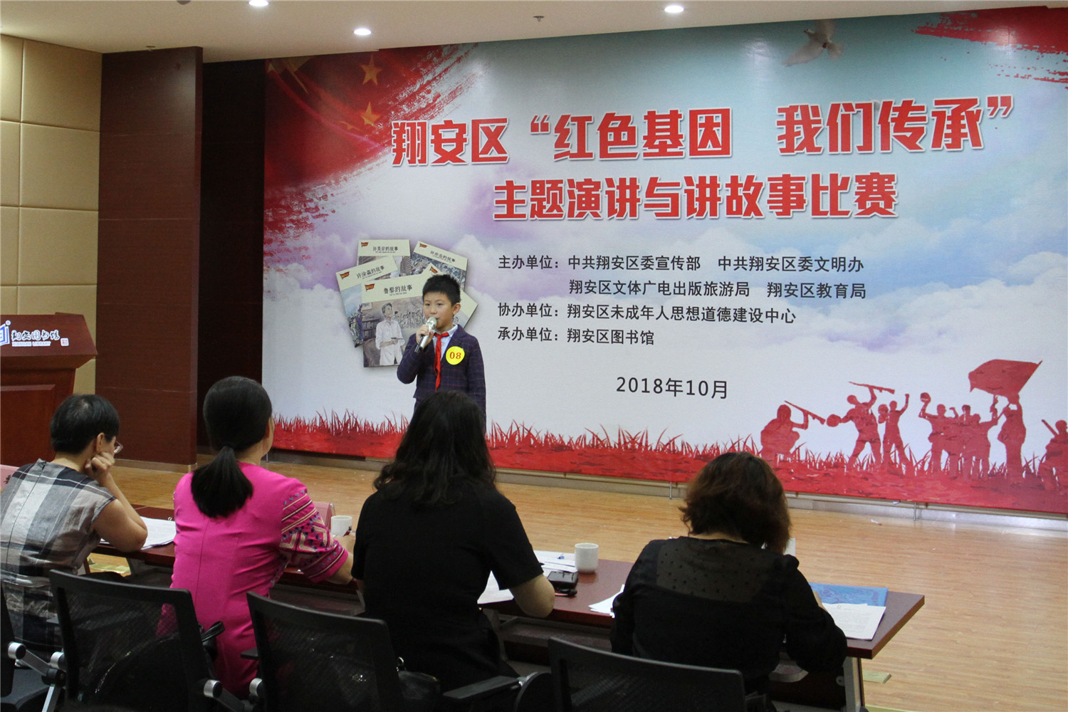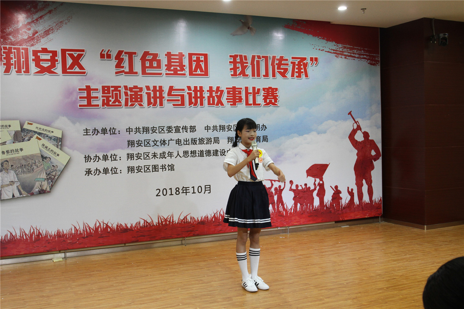 10月26日,由中共翔安区委宣传部、中共翔安区委文明办、翔安区文体广电出版旅游局、翔安区教育局联合举办的翔安“红色记忆”进校园系列活动——翔安区“红色基因 我们传承”主题演讲与讲故事比赛,全区共39名中小学生参加了比赛。