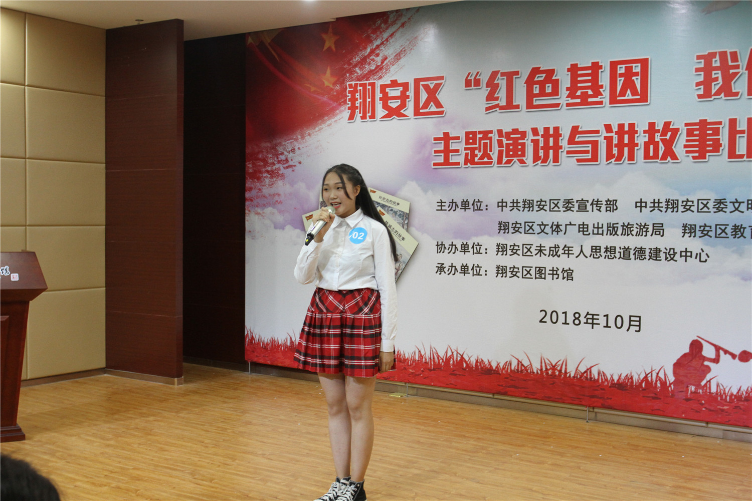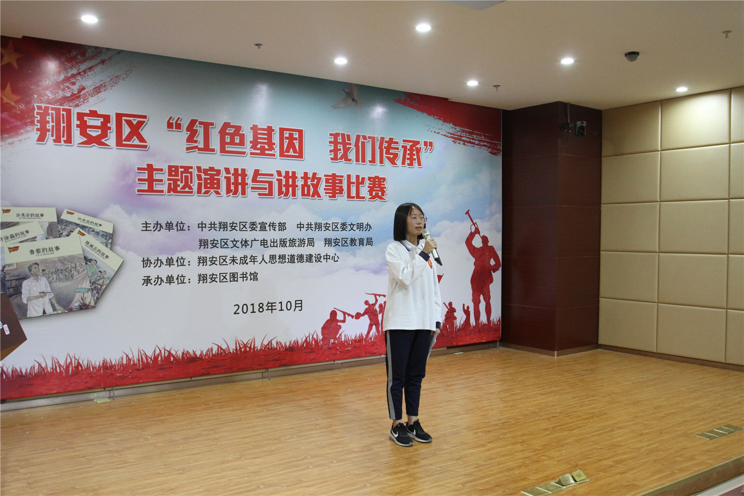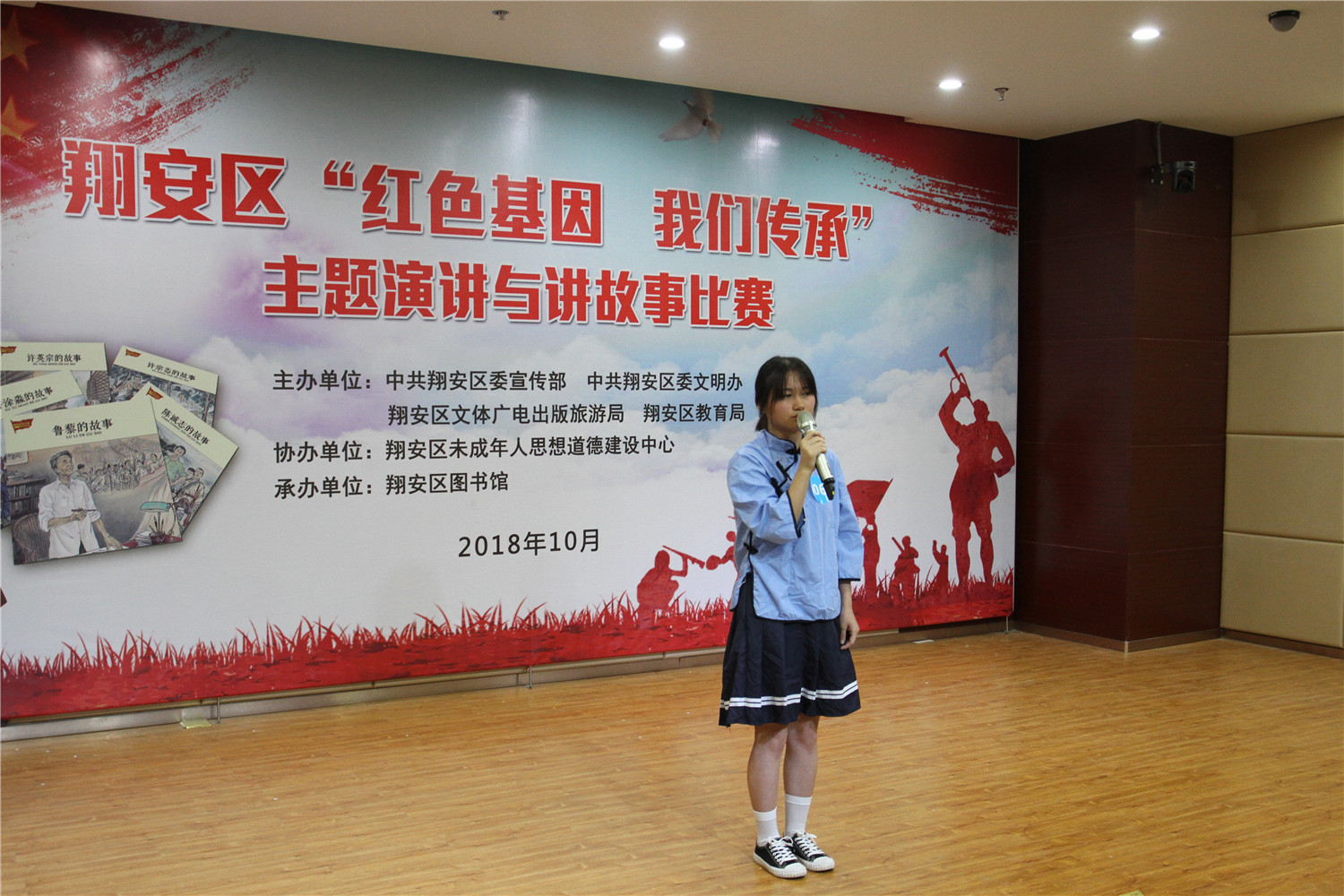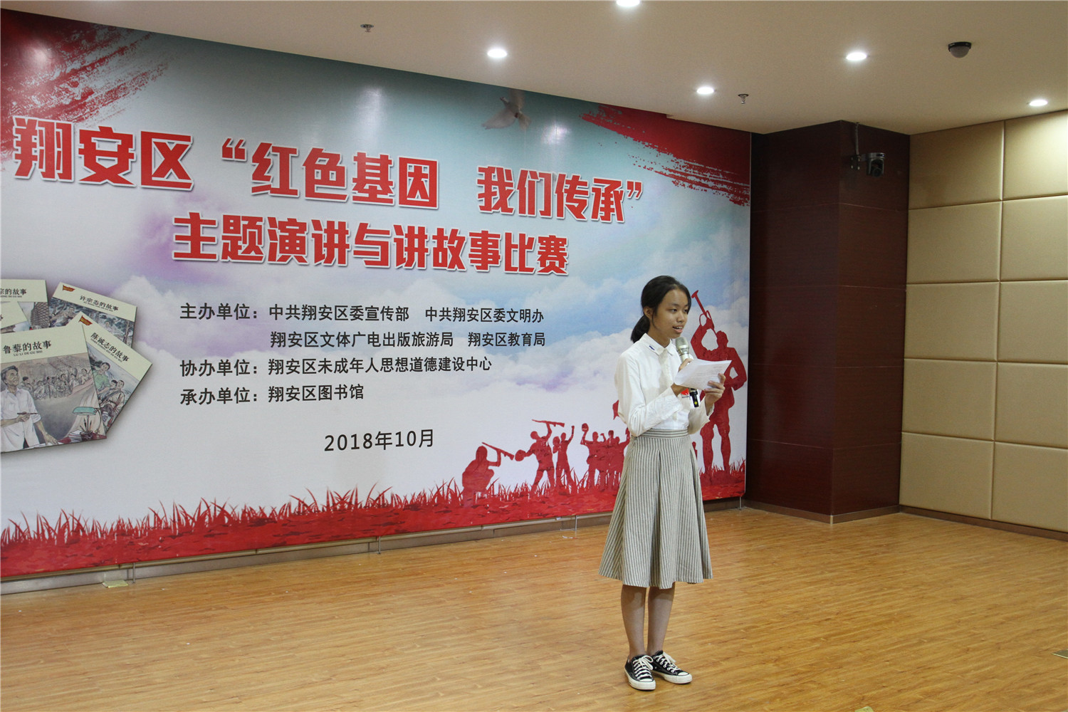 10月26日,由中共翔安区委宣传部、中共翔安区委文明办、翔安区文体广电出版旅游局、翔安区教育局联合举办的翔安“红色记忆”进校园系列活动——翔安区“红色基因 我们传承”主题演讲与讲故事比赛,全区共39名中小学生参加了比赛。