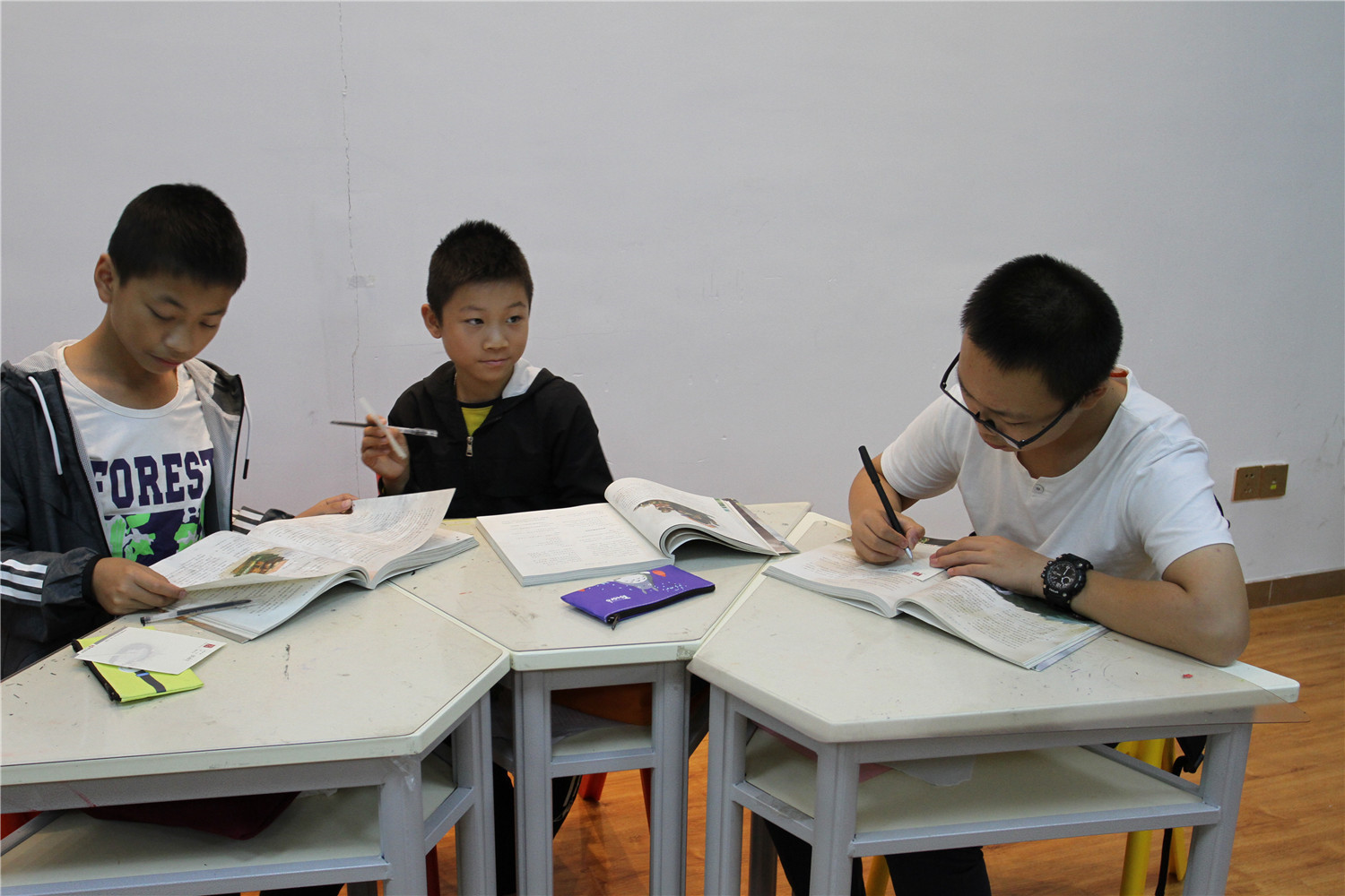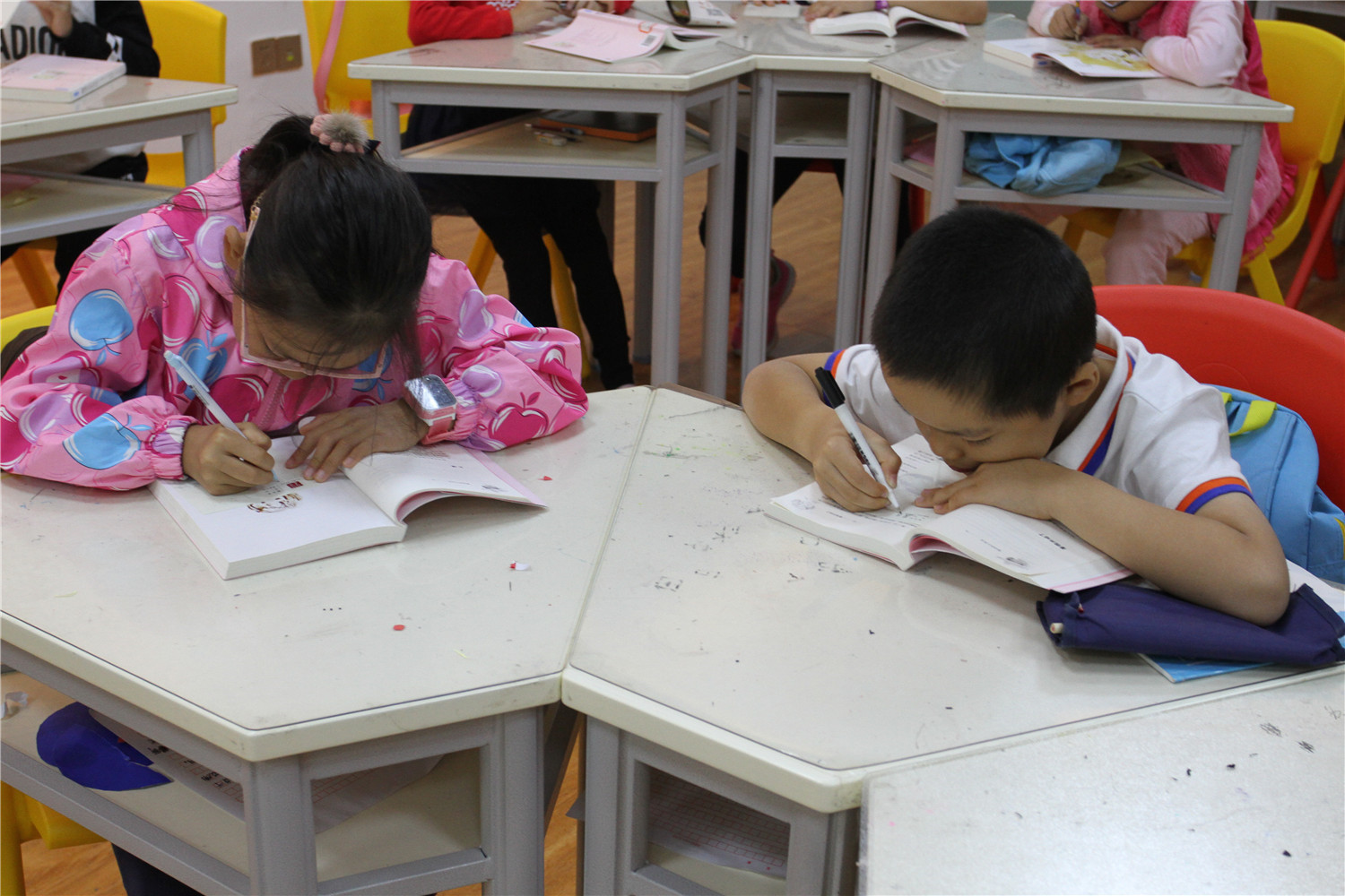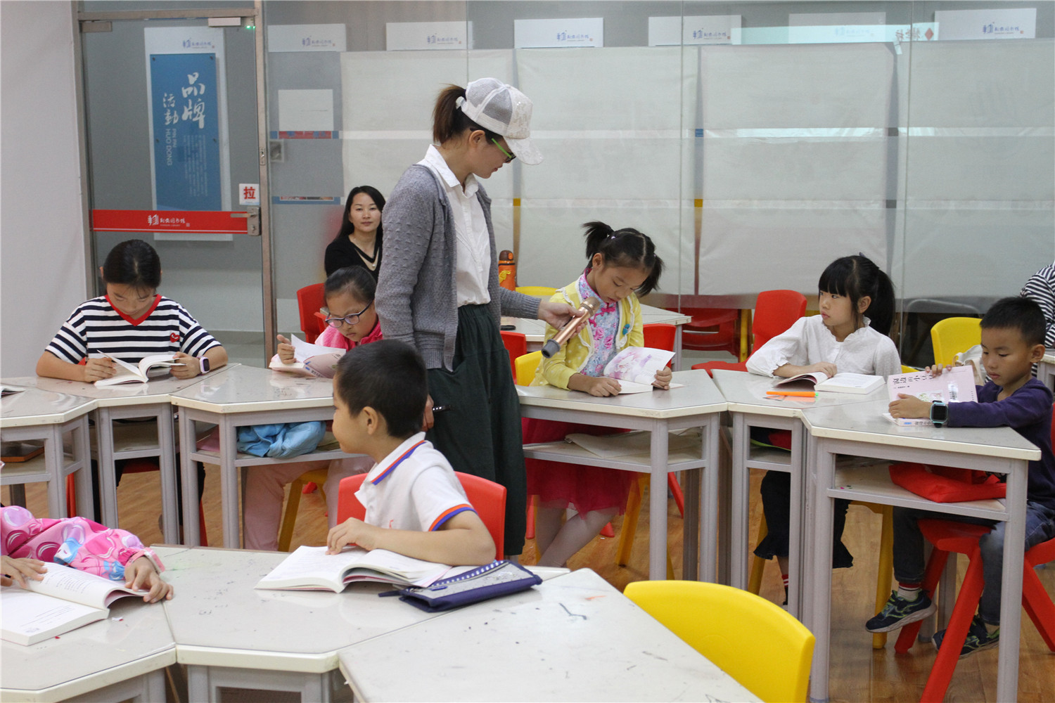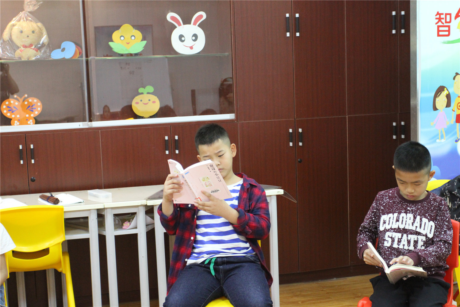 第4期活动的参与对象为小学五、六年级的学生,老师引导他们阅读《哈利波特与魔法石》,小读者都表现出对这本书的浓厚兴趣。在第一周的读书会上老师带着孩子们一起回顾书中人物和故事情节,并指导小读者不同书籍不同的摘记方法,引导大学摘记书中的“咒语”和“神奇生物”,并评选出一名摘记达人。在第二周的读书会上老师把哈利波特书系中的咒语拎出来,一边解释一边回顾书中情节和人物,通过“魔法变变变”的活动,分组让大家熟记咒语,制定好对战策略,两两出列分别使用咒语对抗,极大调动起了小读者的积极性。读书会上,老师指导小读者撰写读后感,填写“同读一本书”、“好书我推荐”卡片,其中郭昱麟成为本期“精读达人”。