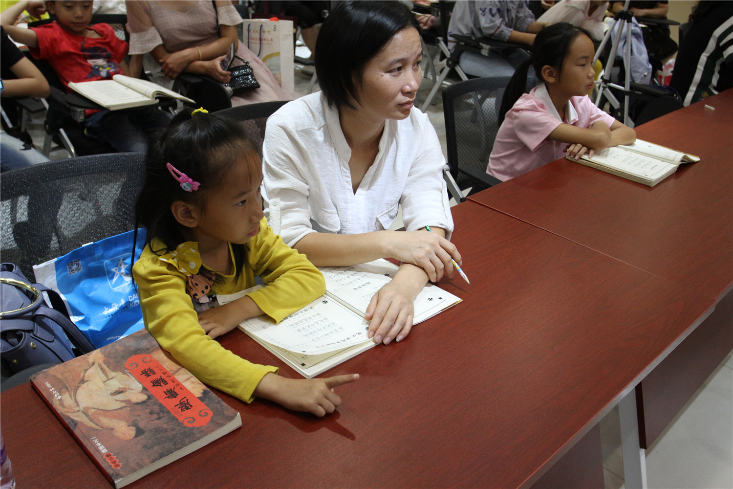 翔安区图书馆联合义雅书院每周六上午9:00—10:00举办公益国学课堂,组织小读者和家长一起体验“国学”,紧扣“国学诵读经典”的主旨,辅以德能主题课,在引导亲子共读经典的同时,提升对经典的认识、开拓德能教育的思维。