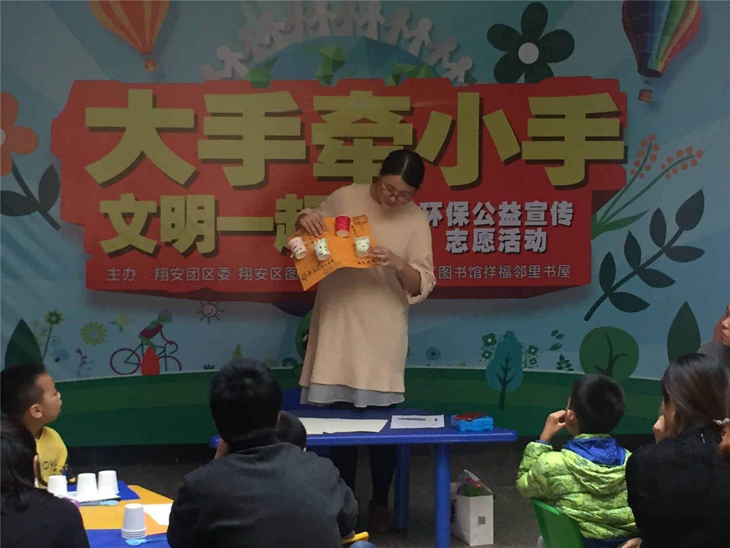 随着人们的生活水平的不断提高,各种各样的垃圾不断的产生,而如何有效的处理垃圾,成了我们对环境保护的一种责任一种使命。11月3日,由翔安区图书馆携手翔安团区委共同主办的“大手拉小手 文明一起走”环保公益宣传志愿活动,在祥福邻里书屋火热开展,由孙蕊芳老师开堂授课,与家长小朋友们共同走进垃圾分类的小课堂中,制作“垃圾分类”主题手工,从小抓起,让垃圾分类的意识根植于小朋友的思想中,通过举办垃圾分类的主题活动,让家长于小朋友共同参与,既能增进亲子间的亲密度,又能增强家庭的环保意识。