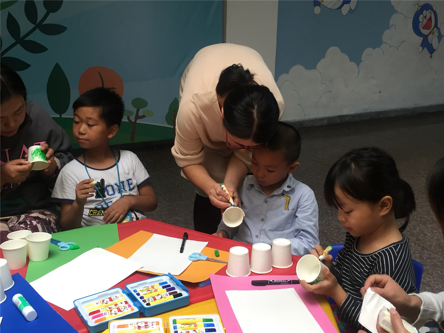 老师指导小朋友们创作