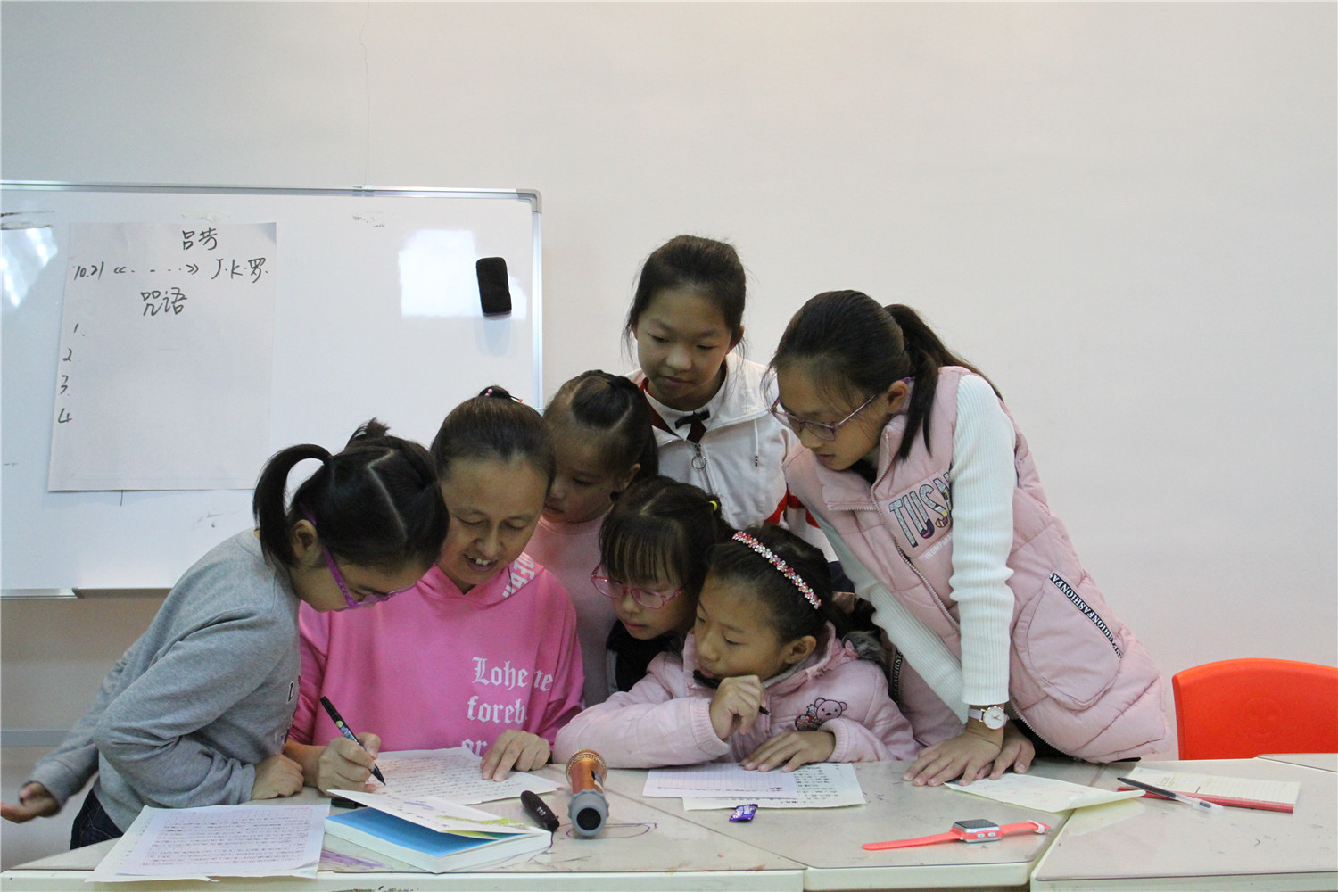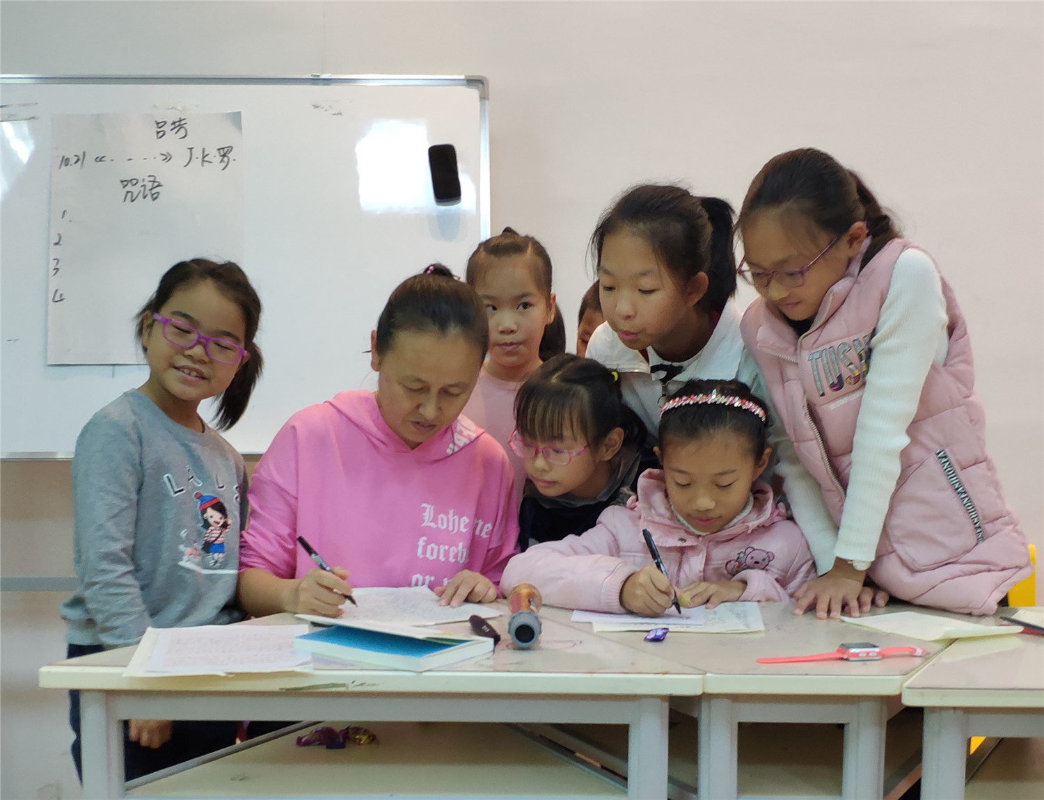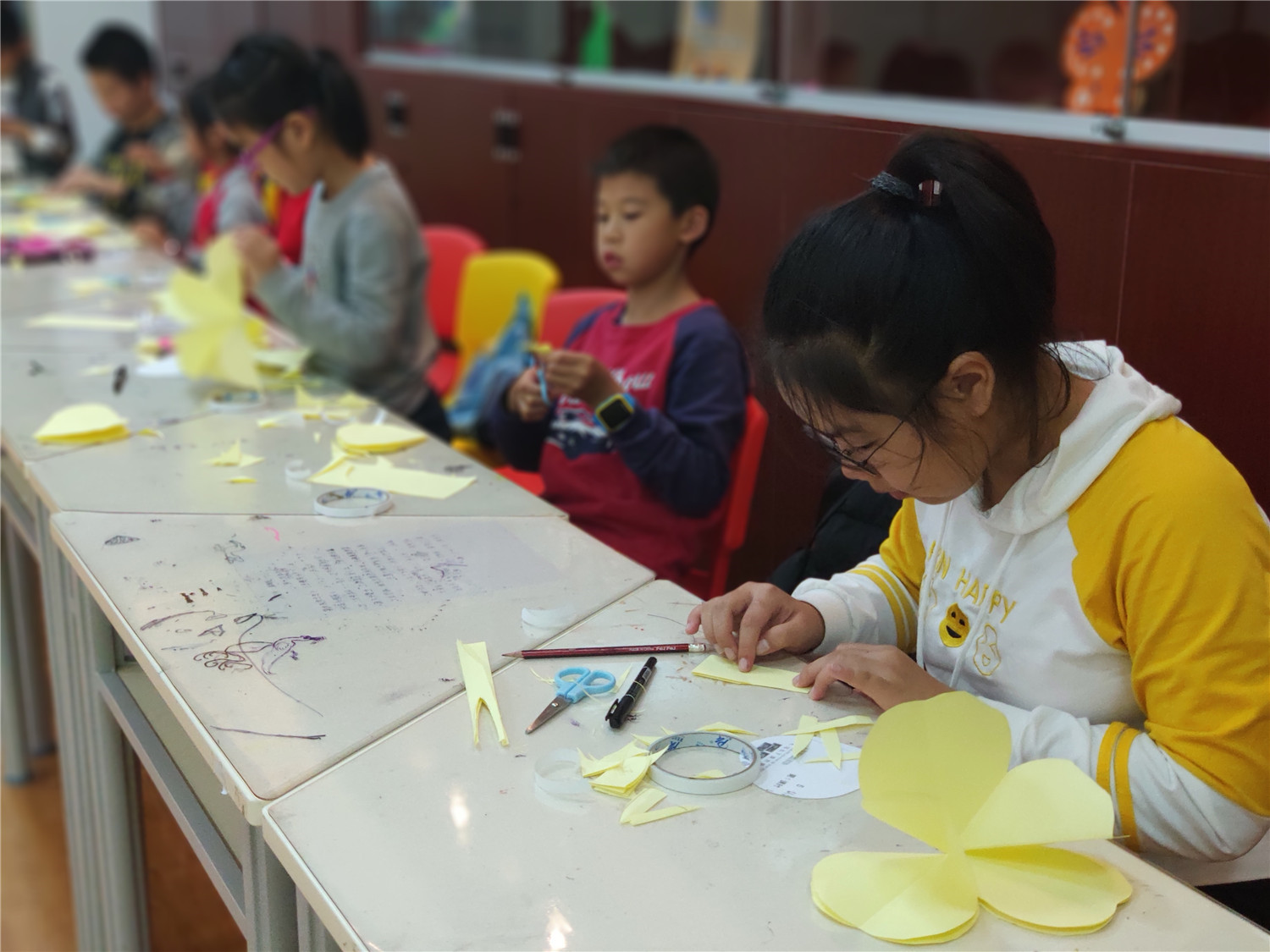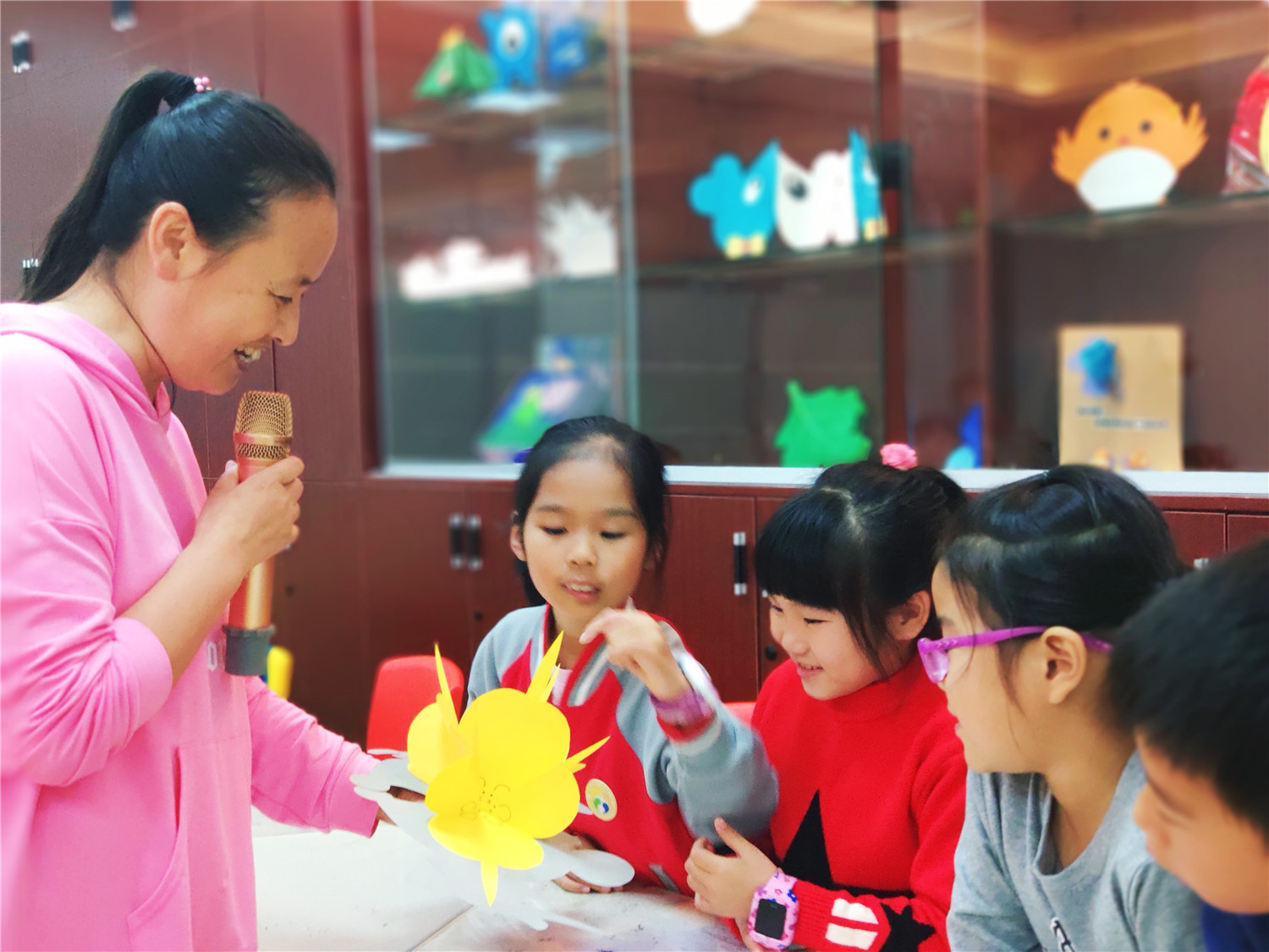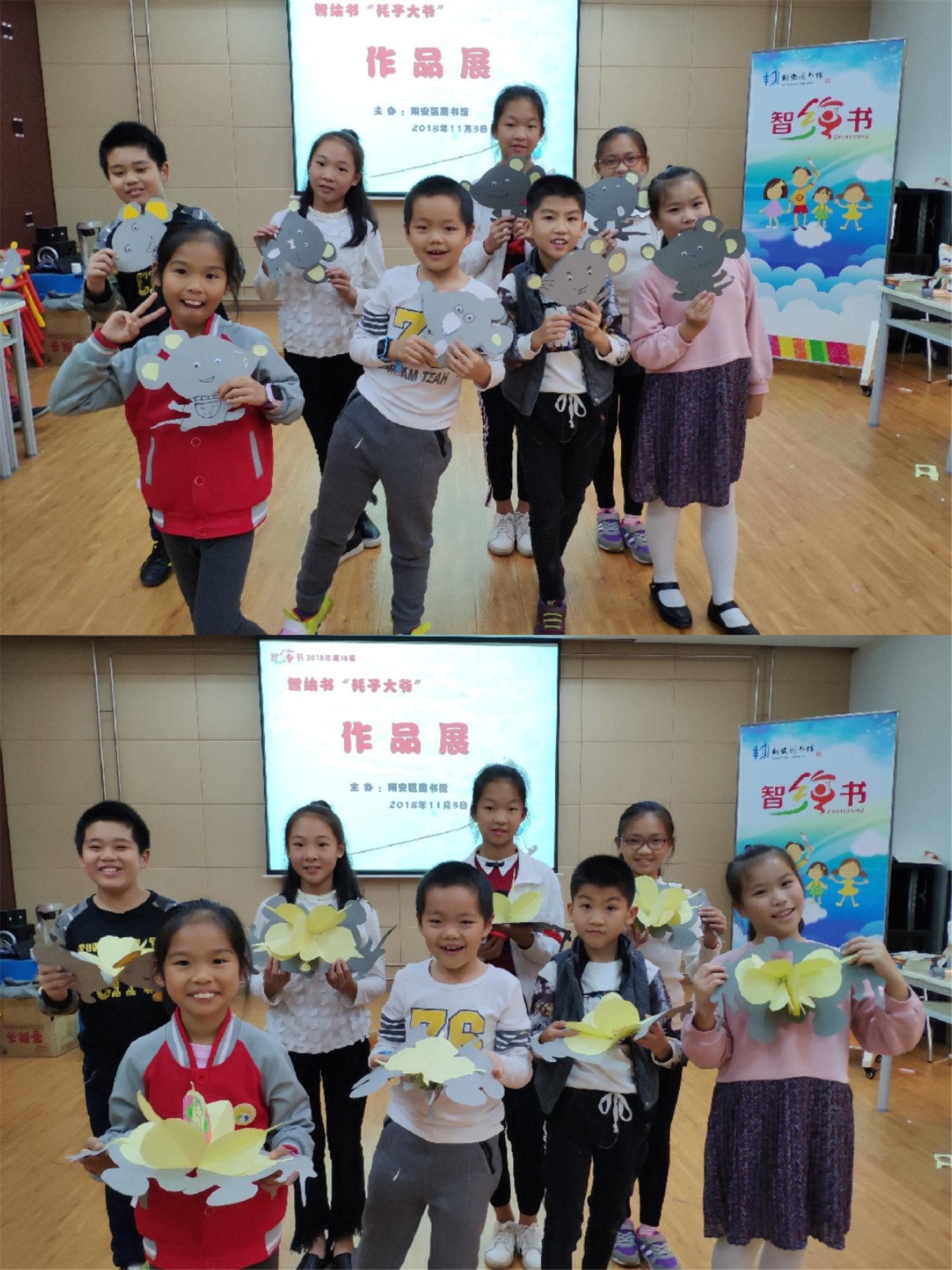 本期“智绘书”活动,香橼老师首先让小读者们伴着童谣《猫儿拿耗子咧》做游戏,又以《耗子大爷起晚了》的故事进行好书推介。针对小读者们正在面临的期中考试,老师教他们如何利用思维导图写人、写事、写景,同时让他们创作一篇“我与小动物之间的一件有趣又感人的事”的作文,并现场指导。手工书制作环节,老师指导小读者们制作一本以“耗子大爷”为封面、富有创意、趣味性的“智绘书”。