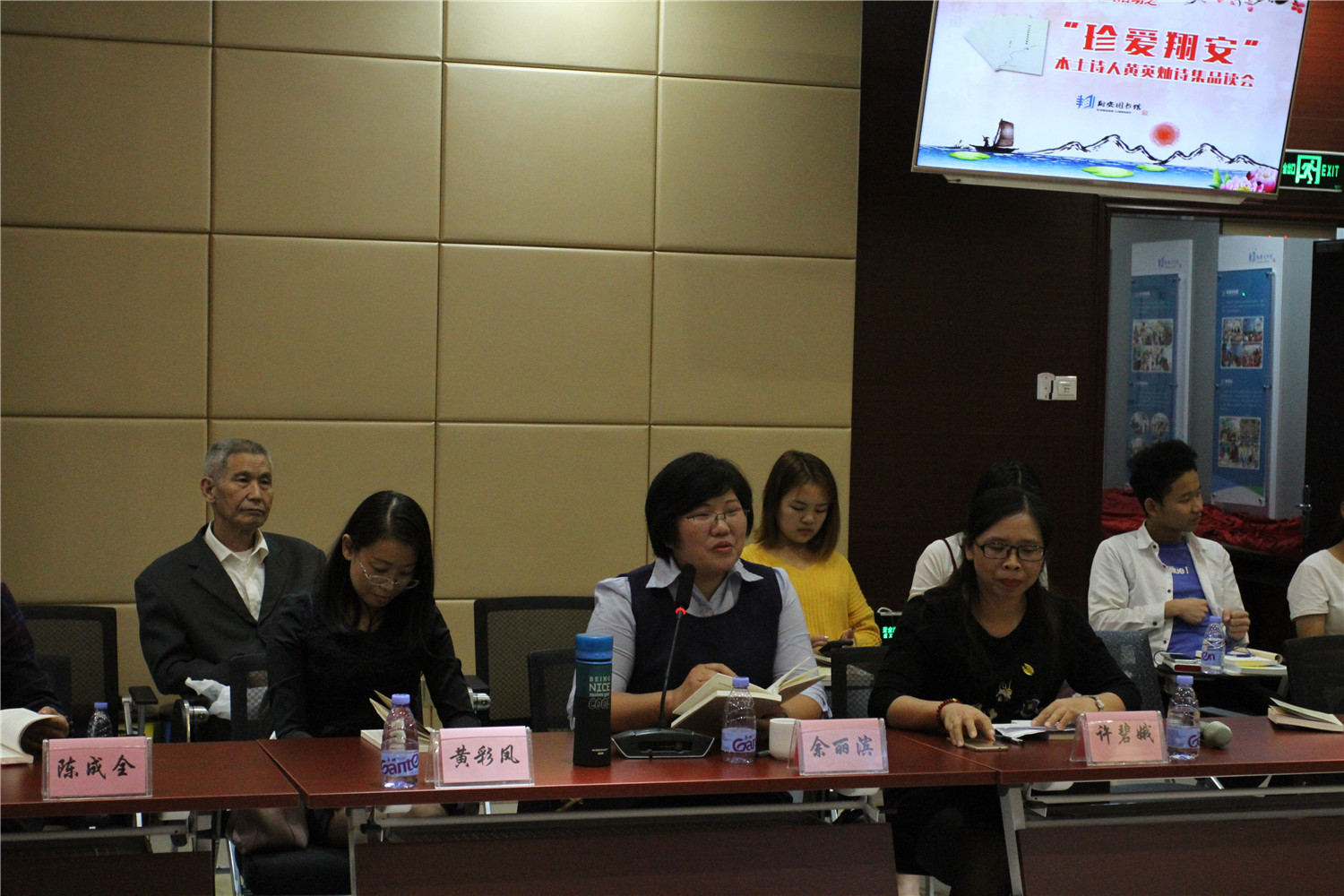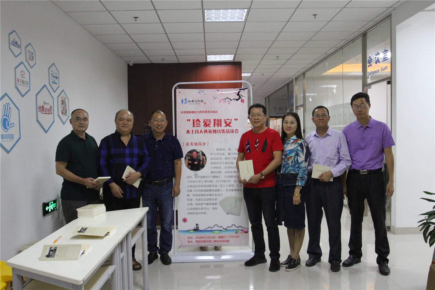 为庆祝翔安区建区15周年,营造翔安区浓厚的书香气息,翔安区图书馆于11月10日在二楼报告厅举办了本土作家黄英灿诗集《时间收拢疲惫的翅膀》品读会,此活动亦是“书香翔安”2018年全民读书月系列活动之一。主办方邀请了区委办副主任、区委编办主任张金华,区档案局局长、民俗专家张再勇,中国诗歌学会会员、福建省作家协会会员黄国清,中国戏剧家协会会员、福建省曲艺家协会副主席宋永贤,福建省作家协会会员、区委报道组组长林瑞声,福建省作家协会会员禾青子、苏文田等,以及翔安、同安多所学校校长、教师,海洋学院、安防学院师生,翔安区的诗歌爱好者等近50人参加了品读会。