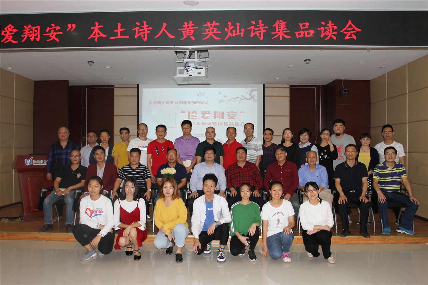 本次品读会品读《时间收拢疲惫的翅膀》一书,该书是由厦门市作家协会会员、本土诗人黄英灿所创作的诗集,内容讴歌乡音乡情、翔安新气象新面貌以及祖国大好河山,具有浓郁地方特色。品读会上,作者讲述了自己对翔安的深厚情感及自己眼中“翔安之美”,分享了自己的创作体会和写作经历,并现场签赠书籍;序言作者黄国清、禾青子两位诗人对诗集作了精彩点评;与会作家、专家围绕创作题材、风格等方面,也对诗集进行了点评,不仅表达了各自的见解,同时也提出对作家的一些建议;全体嘉宾还诵读部分诗歌并合影。