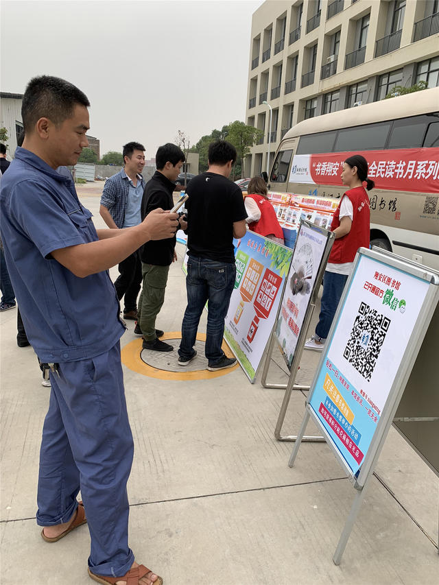 11月12日,翔安区图书馆组织馆员和文化志愿者走进厦门路桥翔通建材科技有限公司,为企业员工提供办证借书服务、“掌阅翔图”移动图书馆推广、图书馆宣传、《中华人民共和国公共图书馆法》宣传、《中华人民共和国公共服务保障法》宣传、《红色精神》图片展、《奋斗的历程 辉煌的成就》纪念改革开放40周年宣传图片等,受到了他们的热烈欢迎。此次活动亦是翔安区图书馆举办的“书香翔安”2018年全民读书月系列活动之“书香企业--走基层送服务”活动。