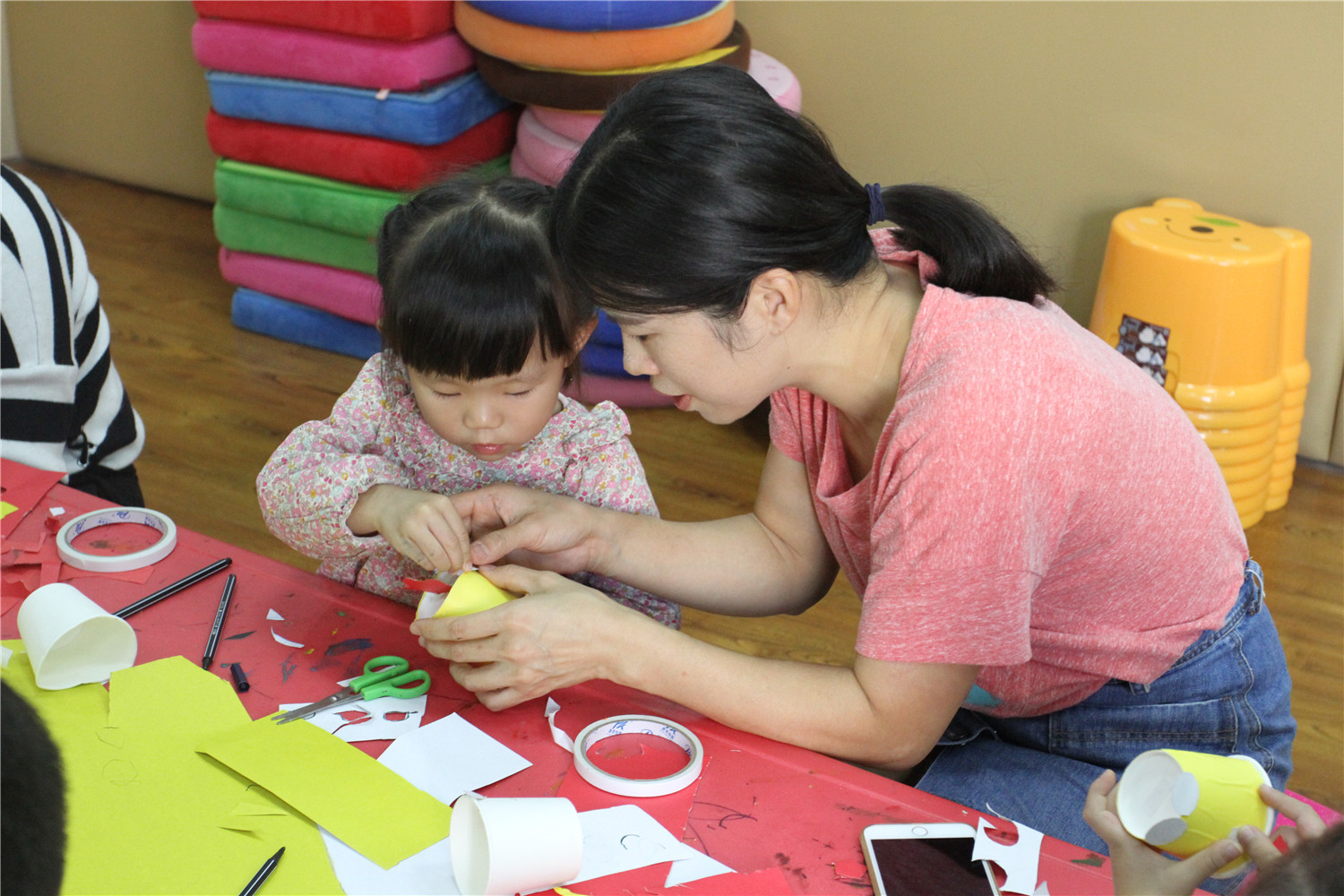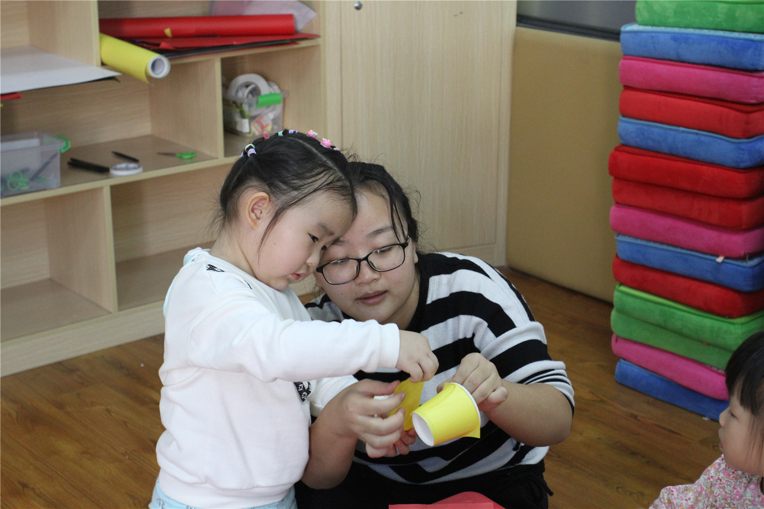 11月11日,翔安区图书馆在一楼低幼阅读体验区举办了“亲子阅读坊”2018年第22期活动。翔安区新店第二中心幼儿园的2名教师志愿者为到场的低幼小读者和家长带来了《加油鸡蛋哥哥》的绘本故事, 让他们明白虽然成长过程磕磕绊绊但又充满惊喜,长大也是一件很棒的事。随后老师还指导他们用纸杯制作一只有自己特点的小鸡。活动结束后,老师讲述了各式各样的绘本,并与家长交流,指导亲子阅读。