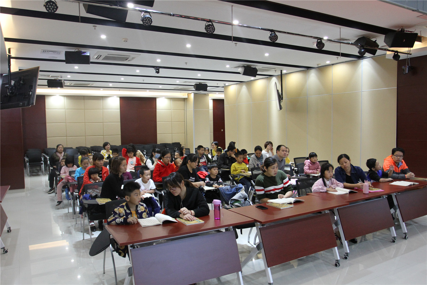 11月17日上午,公益国学课堂第十七期活动在翔安区图书馆报告厅举办,现场座无虚席。本次活动由义雅书院具有十四年国学教育实践经验的力禾老师主持,他指导在座亲子家庭的读者诵读《论语里仁篇》等国学经典。课堂上有分享、有讨论、有答惑,由浅入深,亲子共学,既诵读经典、学习圣贤的智慧,又在德能分享活动中帮助读者树立正确的知见。