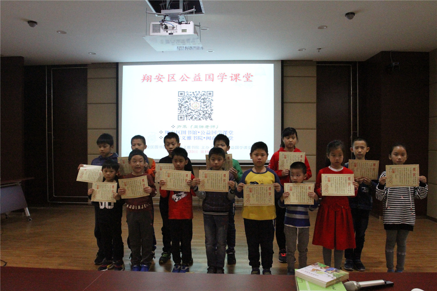 11月24日上午,2018年公益国学课堂最后一起活动在翔安区图书馆报告厅举办,现场座无虚席。活动由义雅书院具有十四年国学教育实践经验的力禾老师主持,他指导在座亲子家庭的读者诵读《论语》等国学经典,并进行德能讲座。最后,主办方还向坚持参加公益课堂活动的亲子家庭颁发了奖状和奖品。