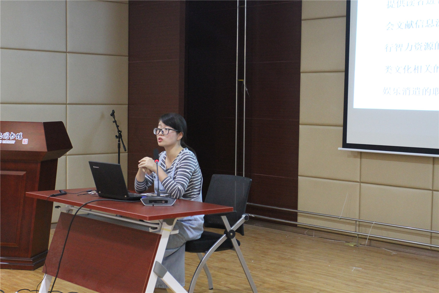 讲座由流通服务部主任黄雪峰主讲,她为馆员们介绍了图书馆的概念、历史、图书馆的类型、社会职能、构成要素以及介绍了县级图书馆的工作内容。通过培训,让馆员了解图书馆的架构、基础业务,以便更好地利用本馆的公共文化基础设施、图书资源,为读者提供更优质的服务。